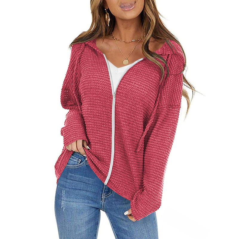 Cross-border 2023 Amazon Women Drawstring Hooded Solid Color Jacket Fashion Casual Zipper Cardigan Long Sleeve Top