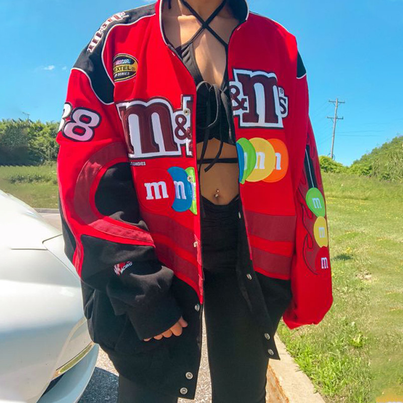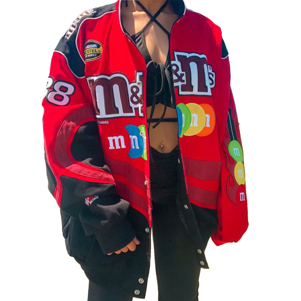 Cross-border 2023 autumn and winter New jacket Amazon motorcycle style color matching printed casual loose long sleeve personalized jacket