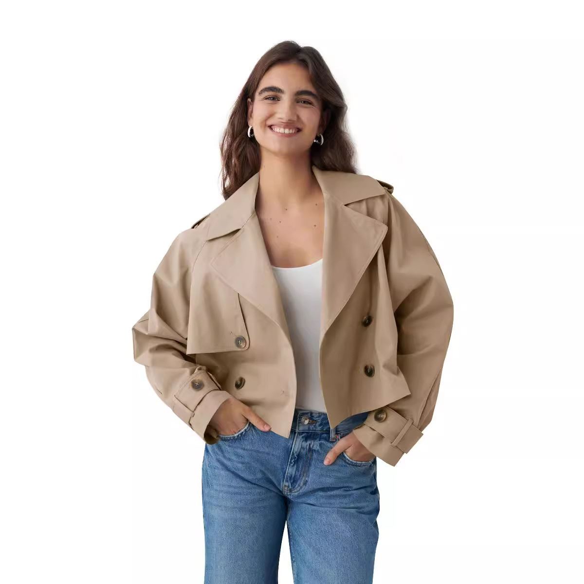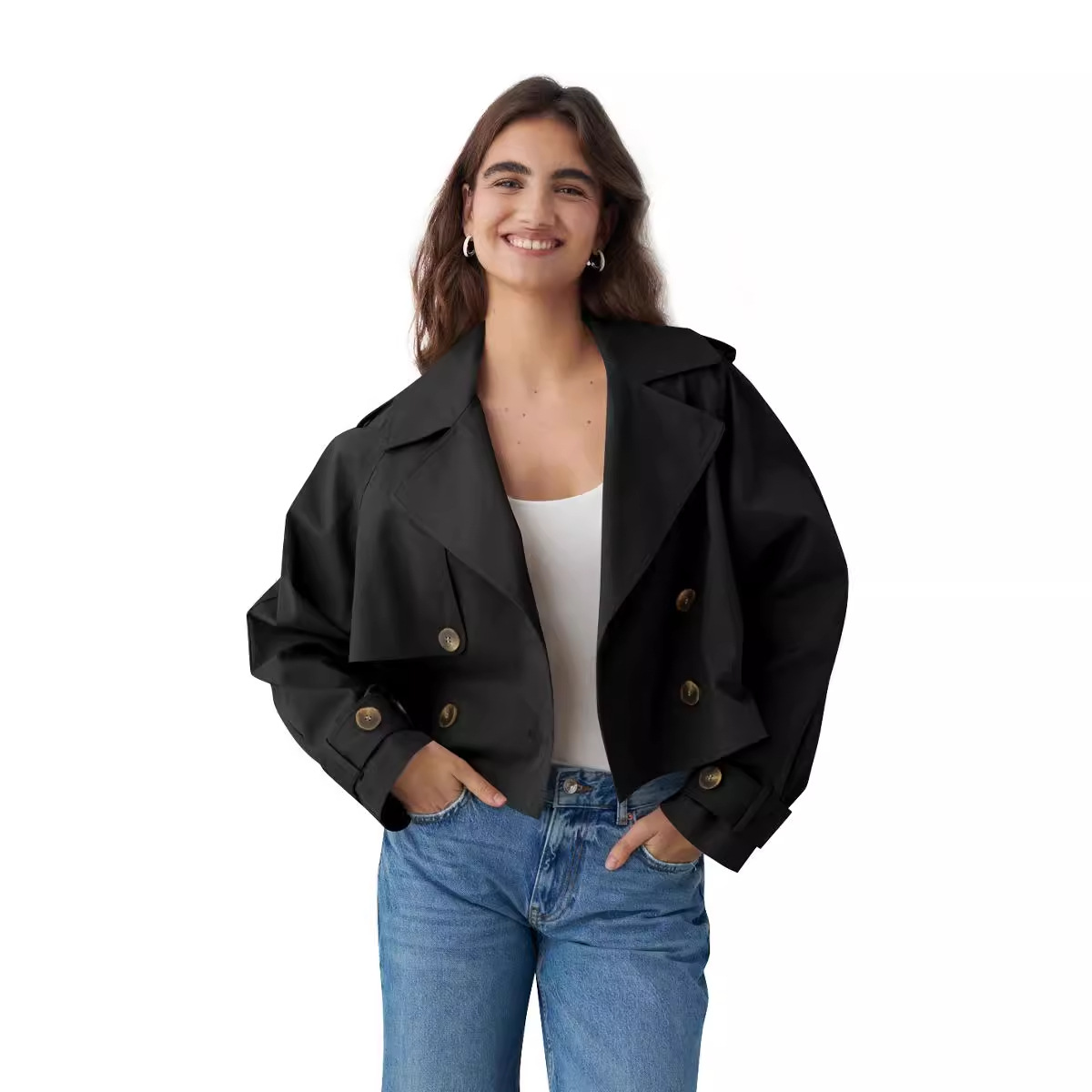 | nameOriginal | Cross-border 2024 European and American women spring new solid color lapel short jacket fashion double-breasted long sleeve casual coat |