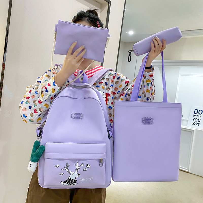 Cross-border 2024 New High School Students’ Backpack Large Capacity Primary School Students’ Backpack Cartoon Schoolbag Four-piece Backpack