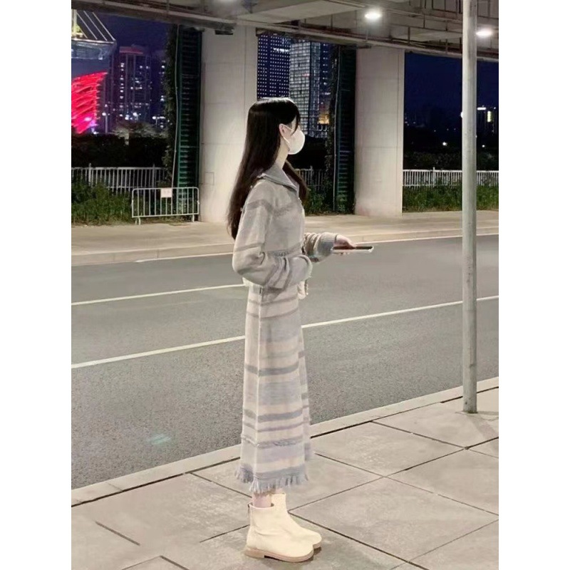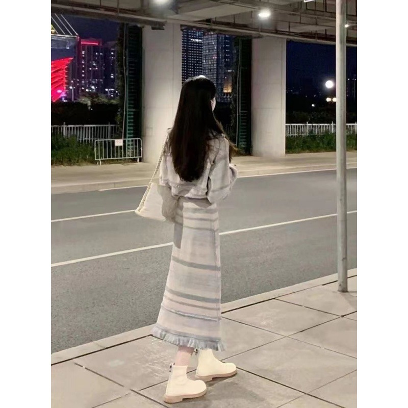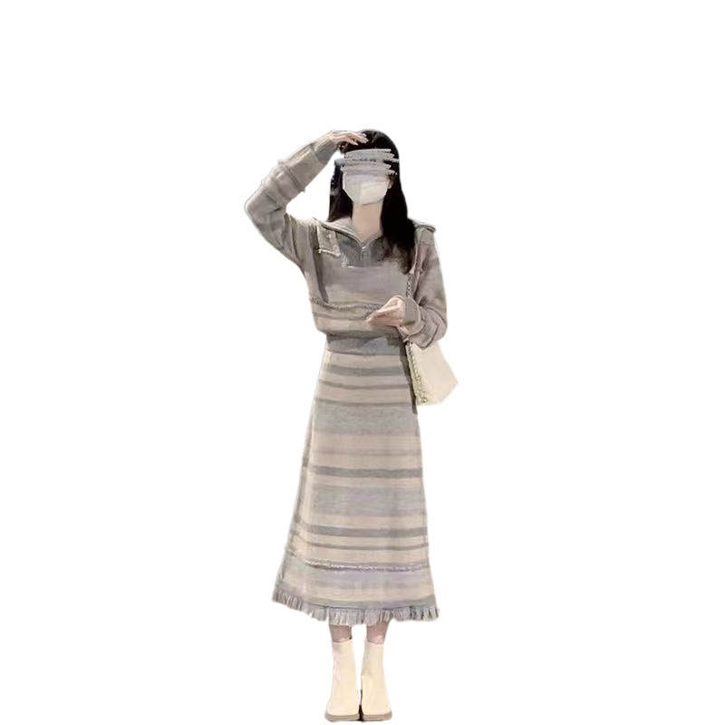 Cross-border 2024 New Niche Knitted Skirt Striped suit Top Dress Children's Design Sense High Waist Two-piece Set Spring