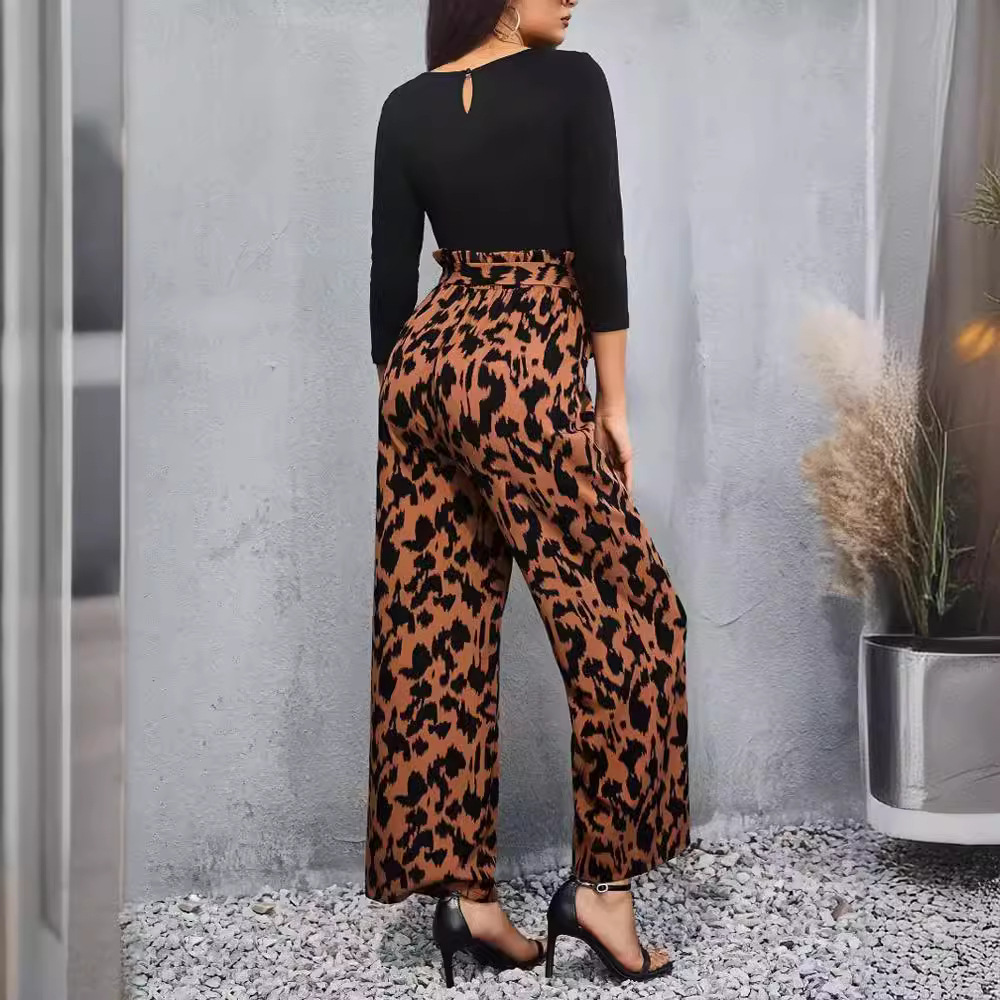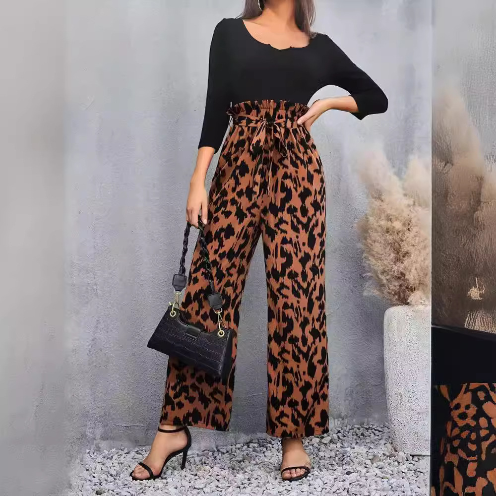| nameOriginal | Cross-border 2024 spring women's elastic waist needle woven printed jumpsuit women's belt straight casual pants spring women's |