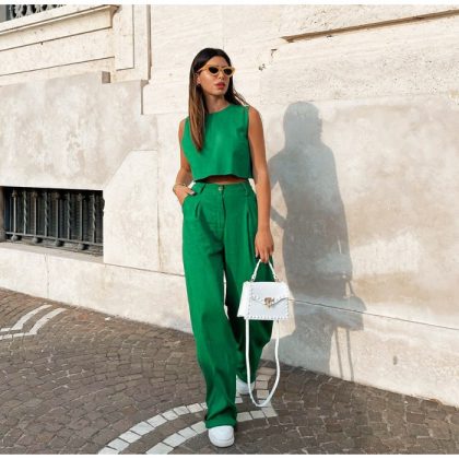 Cross-border 2024 Summer New Solid Color Round Neck Sleeveless Vest Top Trousers European and American Fashion Women’s Two-piece Set for Women