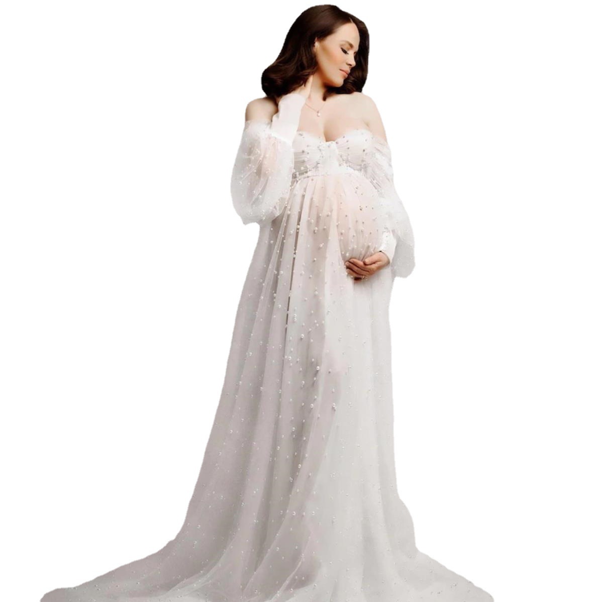 | nameOriginal | Cross-border 23 Photo Portrait Pregnant Women Photo Clothing Skirt Photo Studio Photo Soft Net Bead Lace-up Fairy Pregnant Mommy Dress |