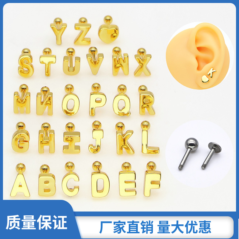 | nameOriginal | Cross-border 26 English letter earrings smooth plating real gold jewelry jewelry European and American popular earrings earrings |