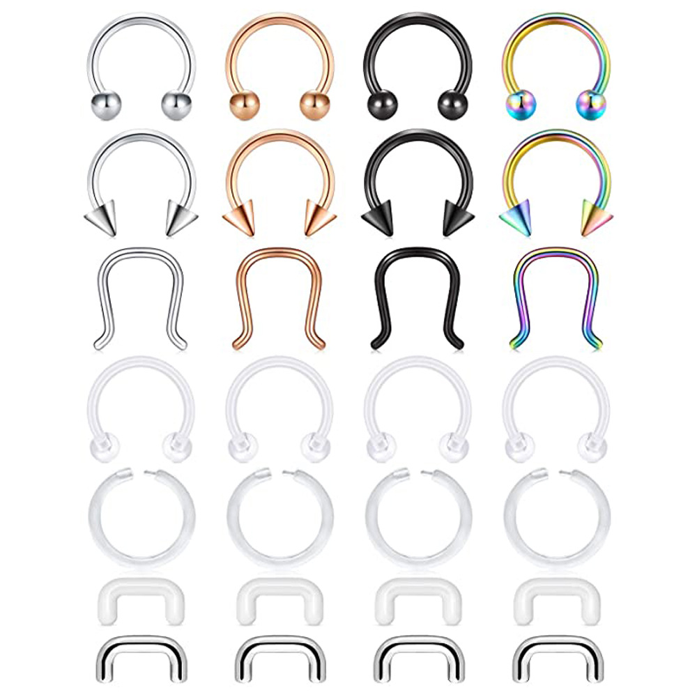 | nameOriginal | Cross-border 28-piece puncture jewelry color stainless steel nose ring invisible transparent acrylic ear bone nail Amazon |