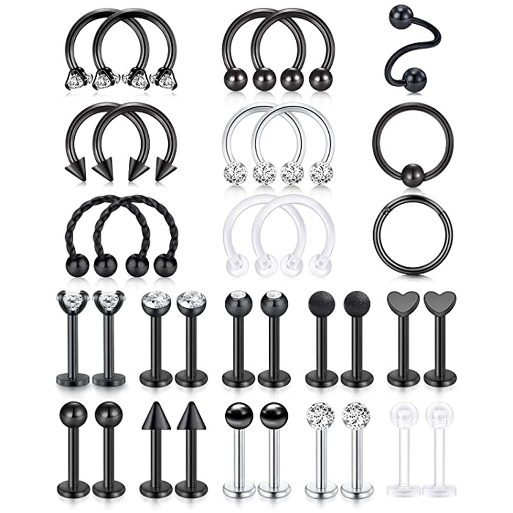 | nameOriginal | Cross-border 35-piece combination suit Amazon hot sale horseshoe stick nose ring invisible sequins twist Diamond piercing jewelry |