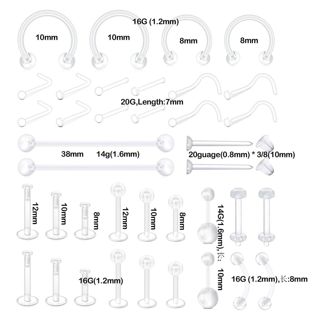 Cross-border 38-piece acrylic invisible anti-allergy nose ring nose nail navel nail ear bone nail lip nail combination set