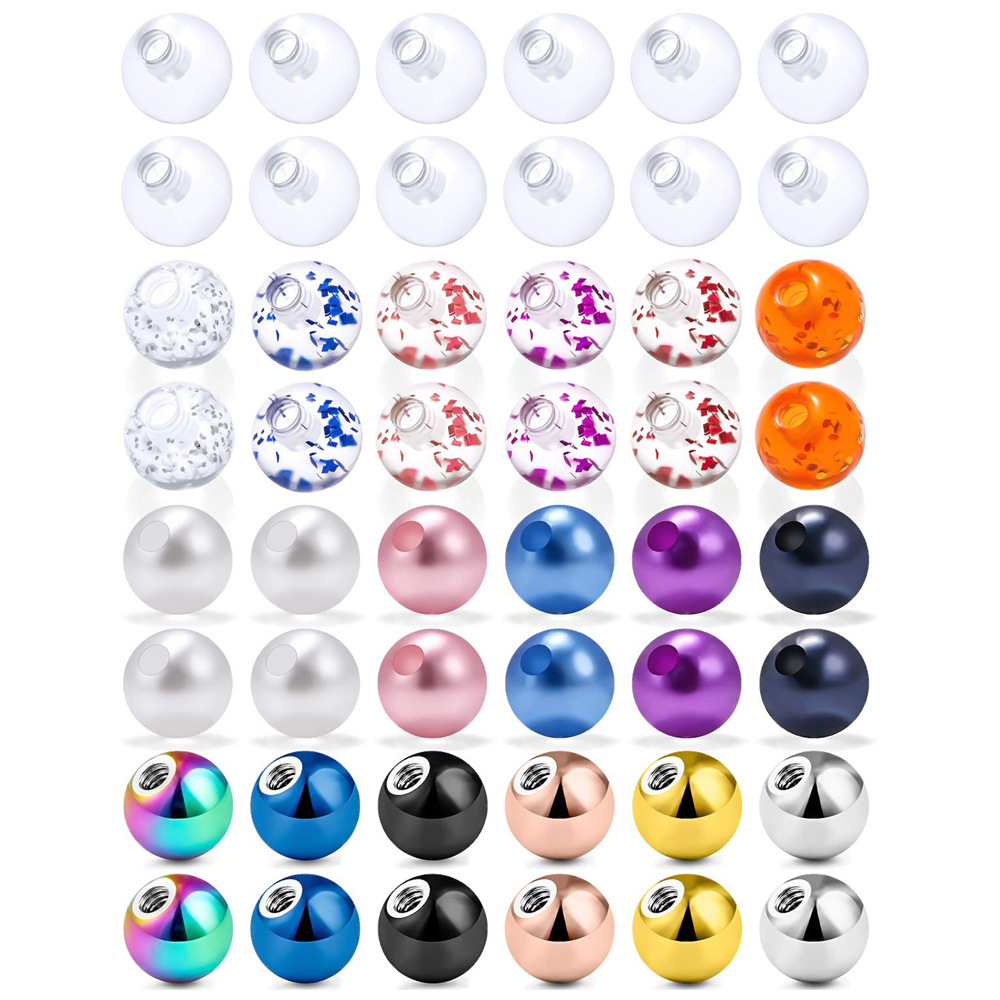 | nameOriginal | Cross-border 48 Pieces Piercing Accessories Ball Acrylic Transparent Sequin Pearl Ball Steel Ball Combination Set Amazon Hot Sale |