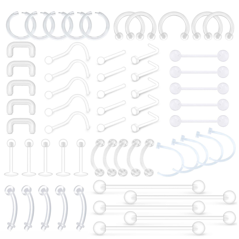 Cross-border 60-piece acrylic invisible transparent horseshoe stick nose nail tongue nail lip nail eyebrow nail combination suit Amazon