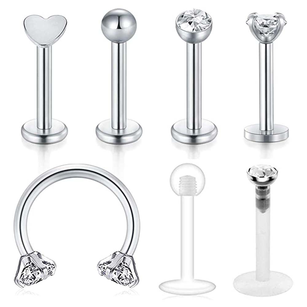 | nameOriginal | Cross-border 7-piece puncture stainless steel Love Ball Diamond lip nail nose ring acrylic UV soft Rod ear nail |