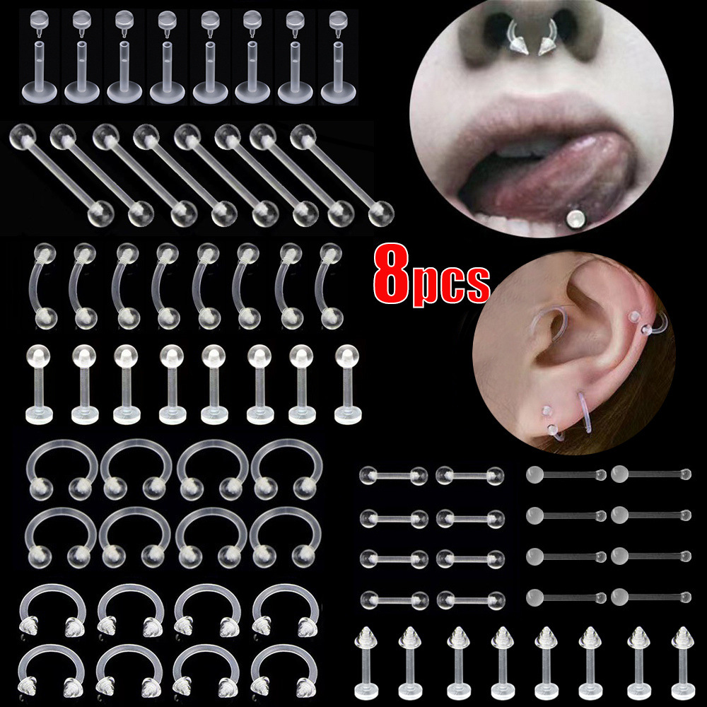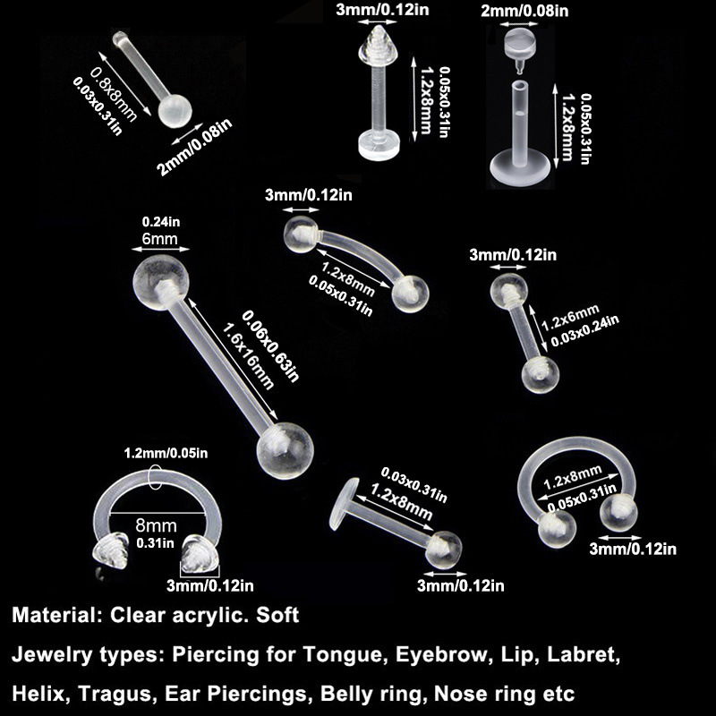 | nameOriginal | Cross-border 8 acrylic lip nail eyebrow nail nose ring horseshoe rod invisible transparent piercing jewelry temu hot sale |