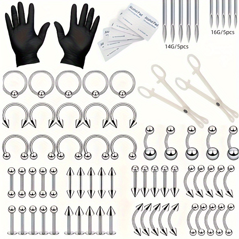 | nameOriginal | Cross-border 84-piece puncture jewelry tools suit stainless steel nose ring lip nail eyebrow nail belly button nail 14G 16G |