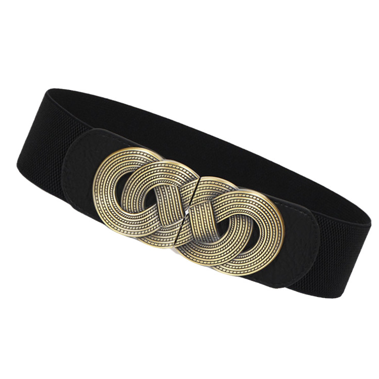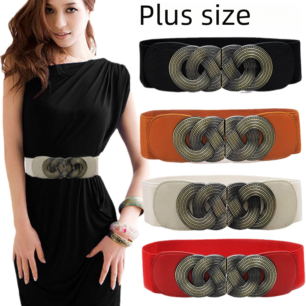 Cross-border accessories European and American fashion all-match elastic women’s lengthened waist seal fat people Bronze distressed buckle plus size plus size belt