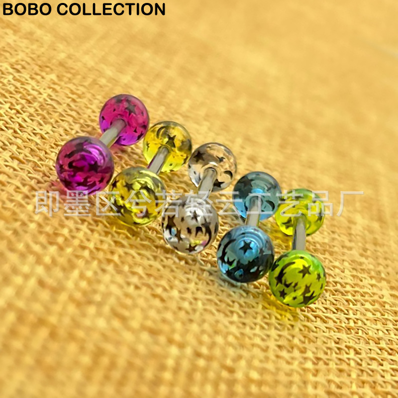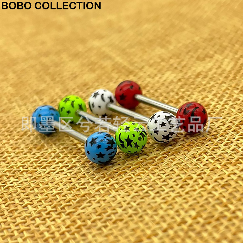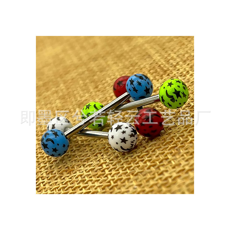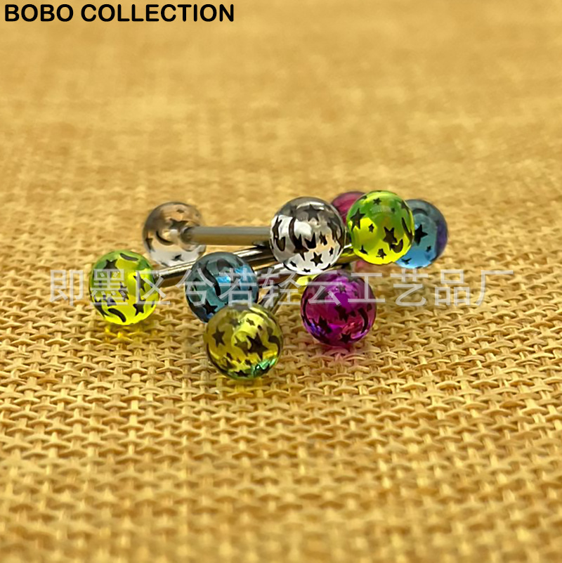 | nameOriginal | Cross-border acrylic star moon dream printing tongue nail European and American puncture jewelry printing 6MM tongue nail replacement ball |