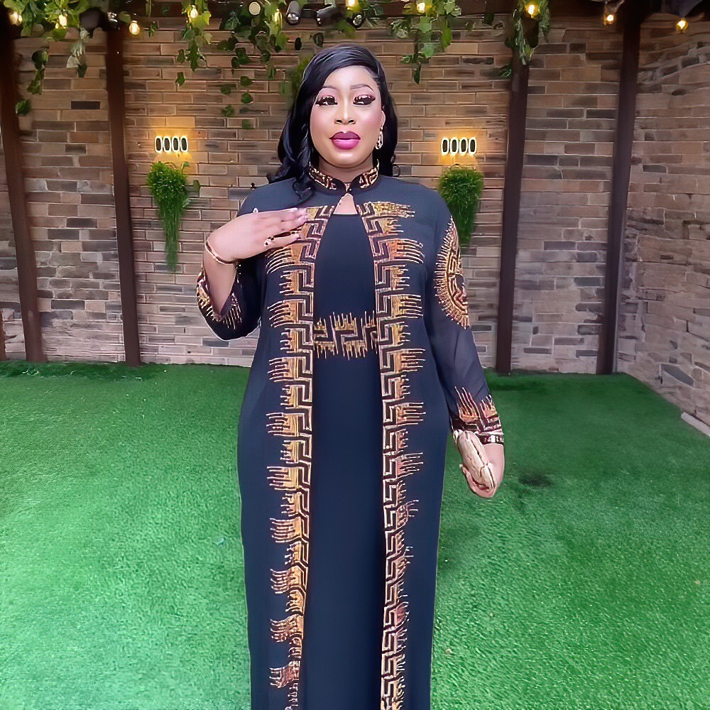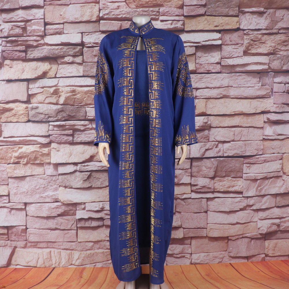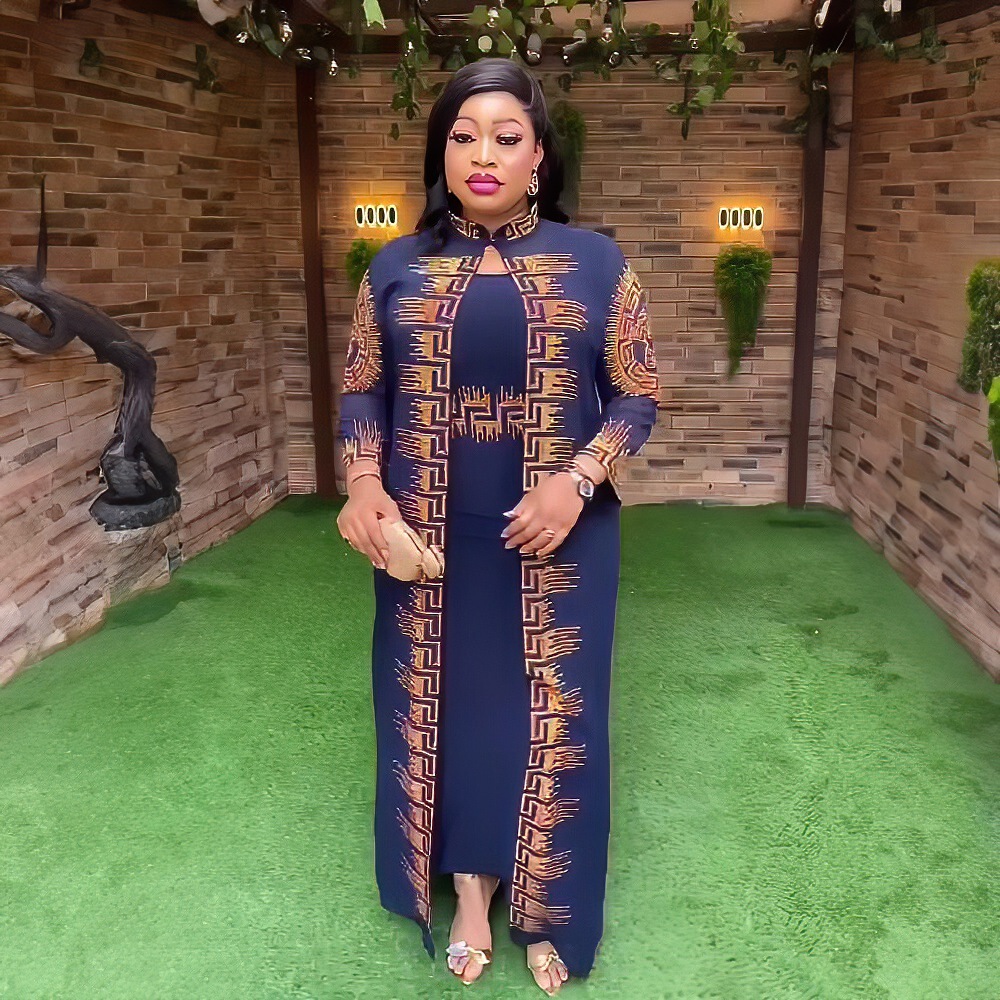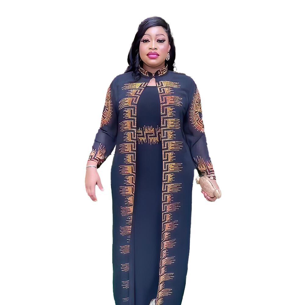 Cross-border African mom African quality women’s clothing suit heavy industry rhinestone stretch inner skirt cardigan long sleeve coat