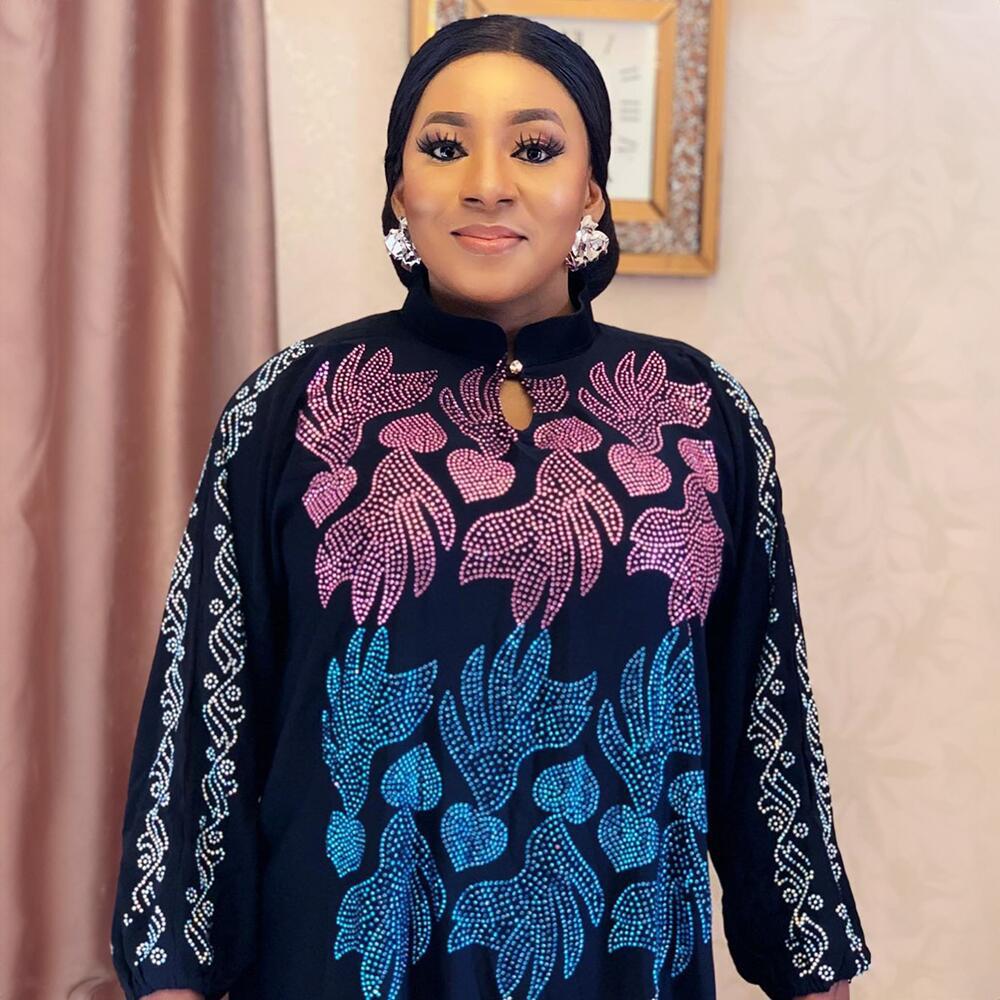 | nameOriginal | Cross-border African Mom Large Size Dress Elastic Heavy Industry Front and Back Color Hot Drilling Chiffon Sleeves Source Spot |