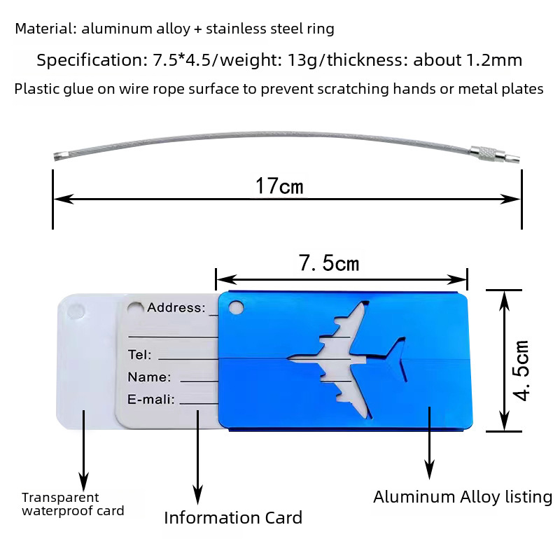 | nameOriginal | Cross-Border aircraft luggage tag anti-lost name brand travel supplies brushed consignment tag metal box aluminum alloy |
