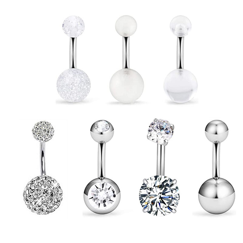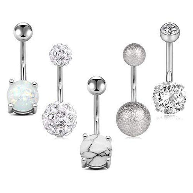 Cross-border AliExpress hot-selling mixed belly button nail piercing jewelry zircon Opal Shambhala ball belly button ring Silver
