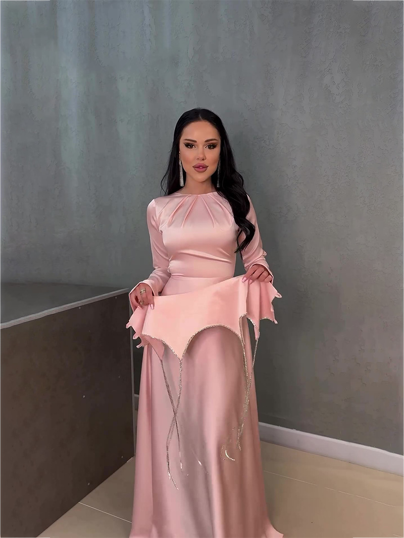 Cross-border Amazon 2023 European and American autumn new solid color long sleeve diamond chain waist-tight dress