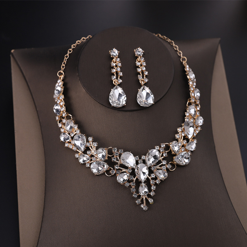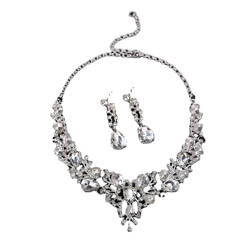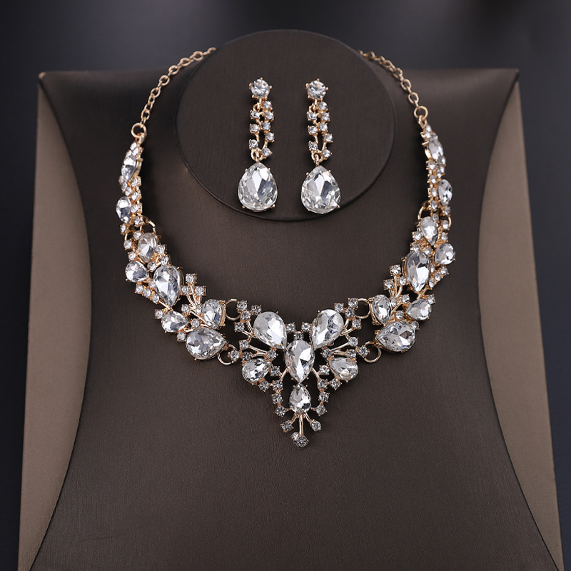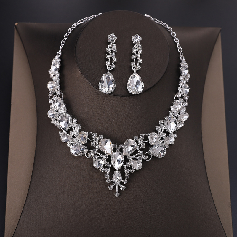 | nameOriginal | Cross-border Amazon bridal wedding Korean crystal rhinestone necklace earrings set Ladies Dance Factory Direct Sales |
