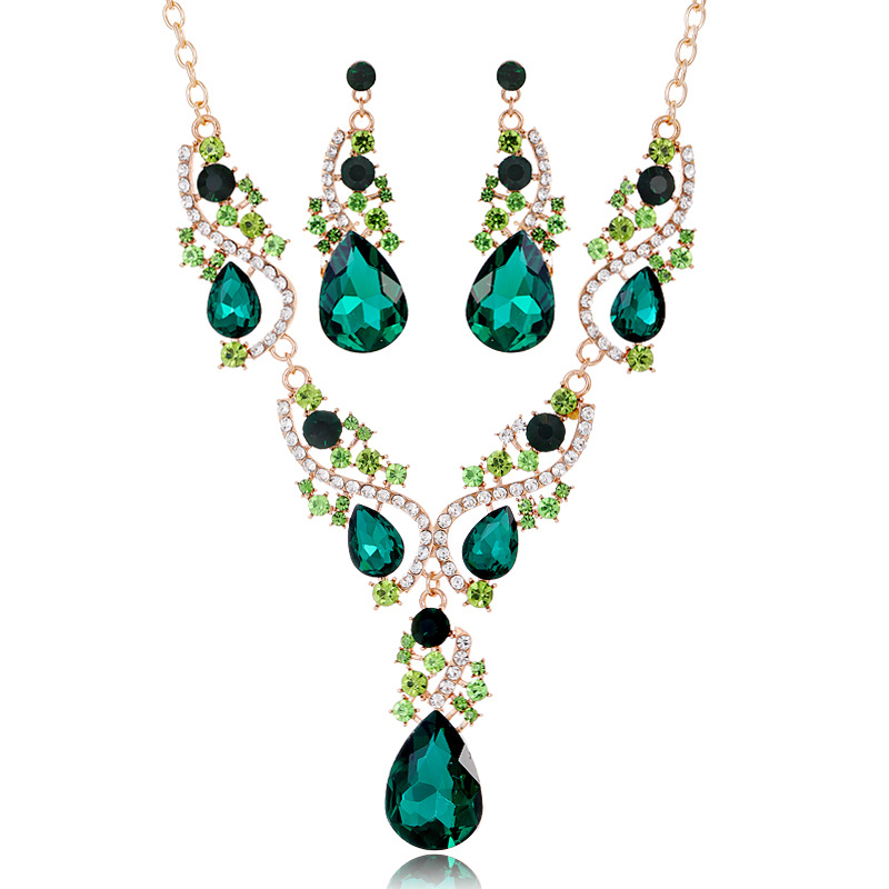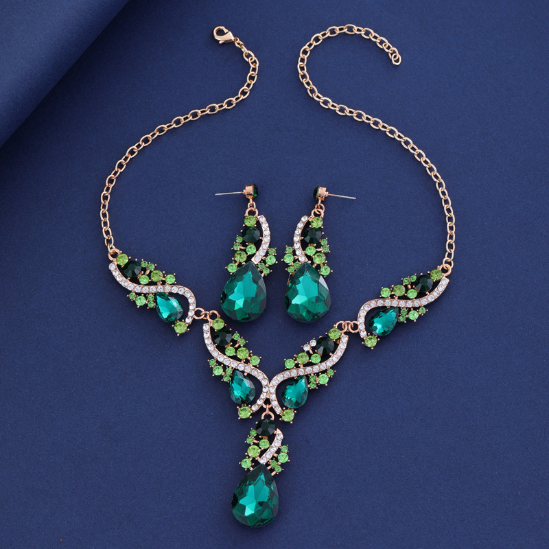 | nameOriginal | Cross-border Amazon Bride Rhinestone Crystal Necklace Earrings suit Ladies Prom Costume Factory Home Decoration Wholesale |