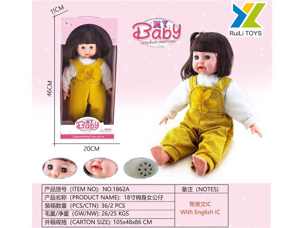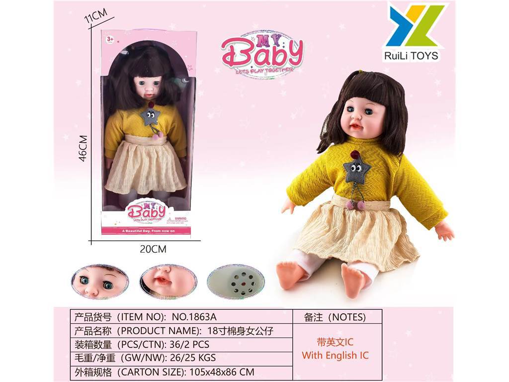 | nameOriginal | Cross-border Amazon Children's 18-inch cotton body female doll fat child doll with English IC girl play house toy |