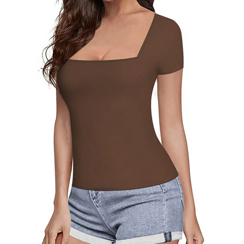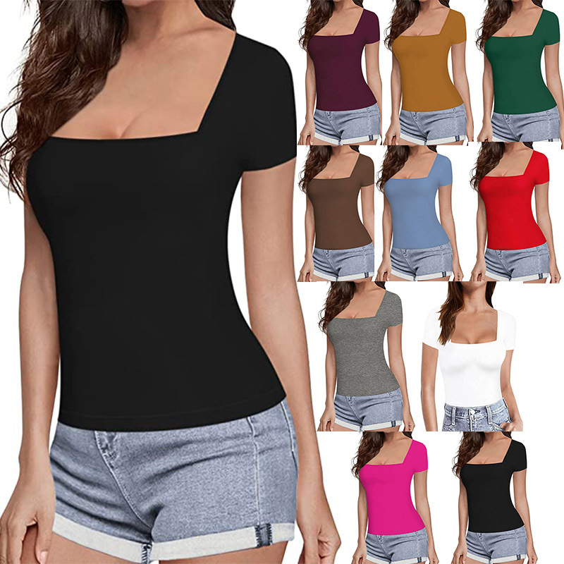 | nameOriginal | Cross-border Amazon ebay New Hot Sale Women's European and American Slim-fit Solid Color Short-sleeved Summer Square Collar Casual T-shirt for Women |