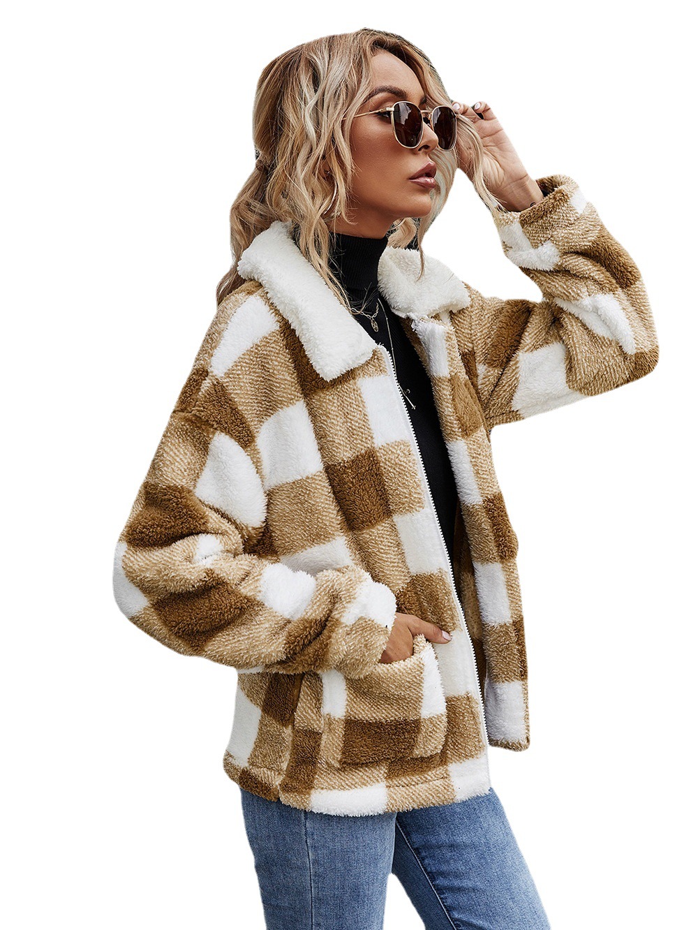 | nameOriginal | Cross-border Amazon Explosions European and American Autumn and Winter Zipper Cardigan Lapel Plush Plaid Jacket Loose Elegant Commuter Women |