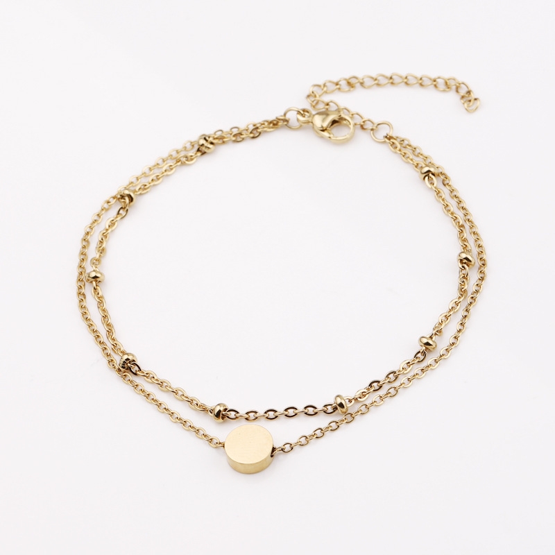 Cross-border Amazon Explosions European and American Women's Bohemian Simple Double-layer Round Pieces of Stainless Steel Plated with 18K Gold