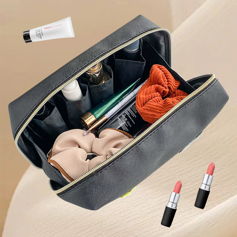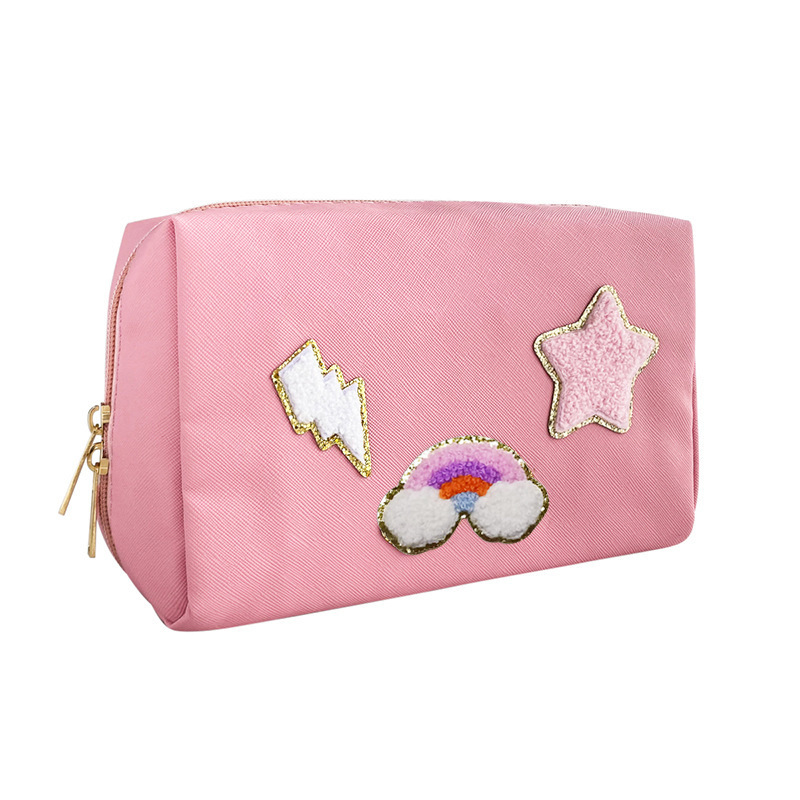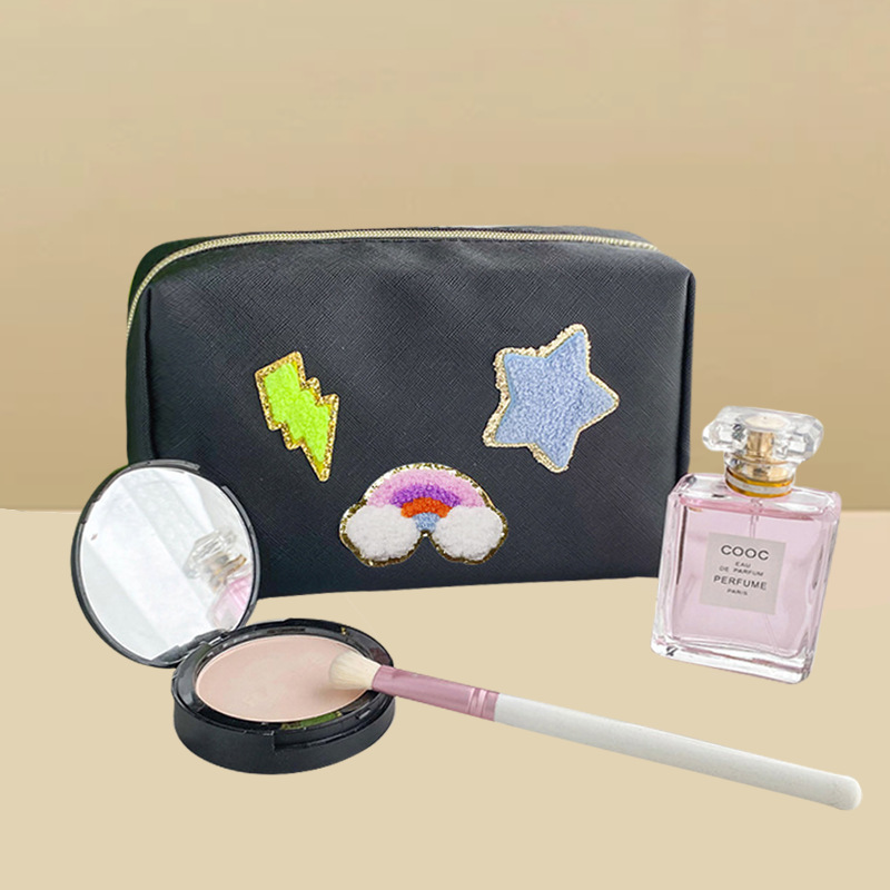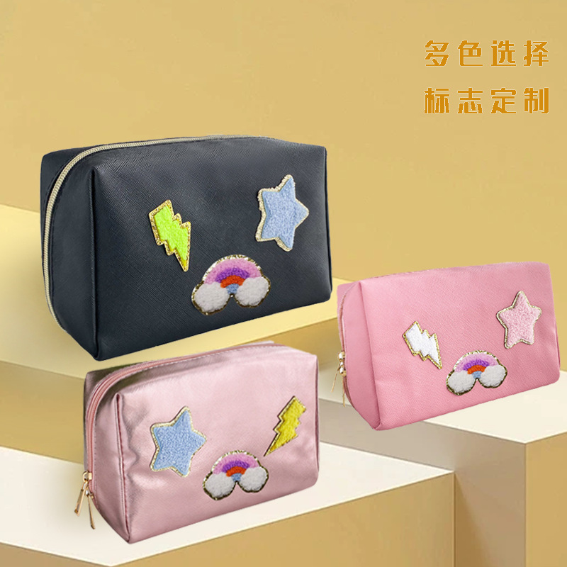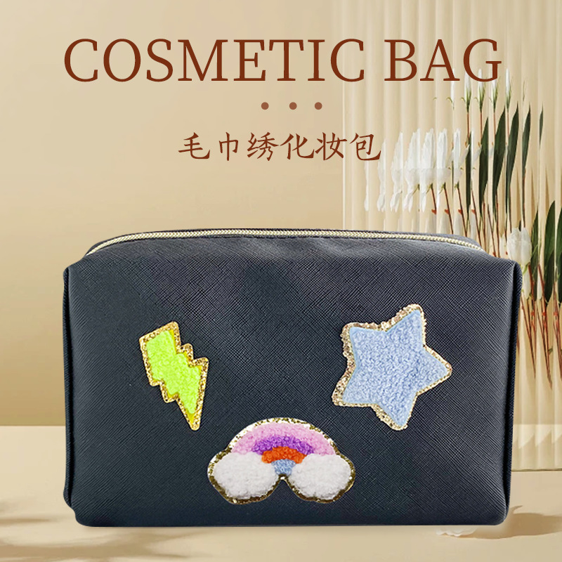 Cross-border Amazon Explosive Letter Towel Embroidered Smiley Cosmetic Bag Portable Waterproof Large Capacity Storage Bag Wash Bag