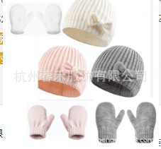 Cross-border Amazon factory spot 7 color 3 size children's autumn and winter knitted hat bow hat gloves