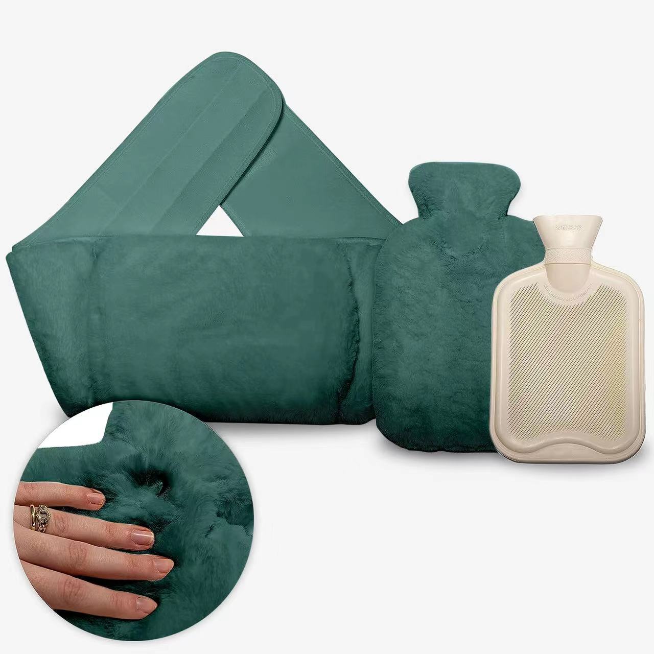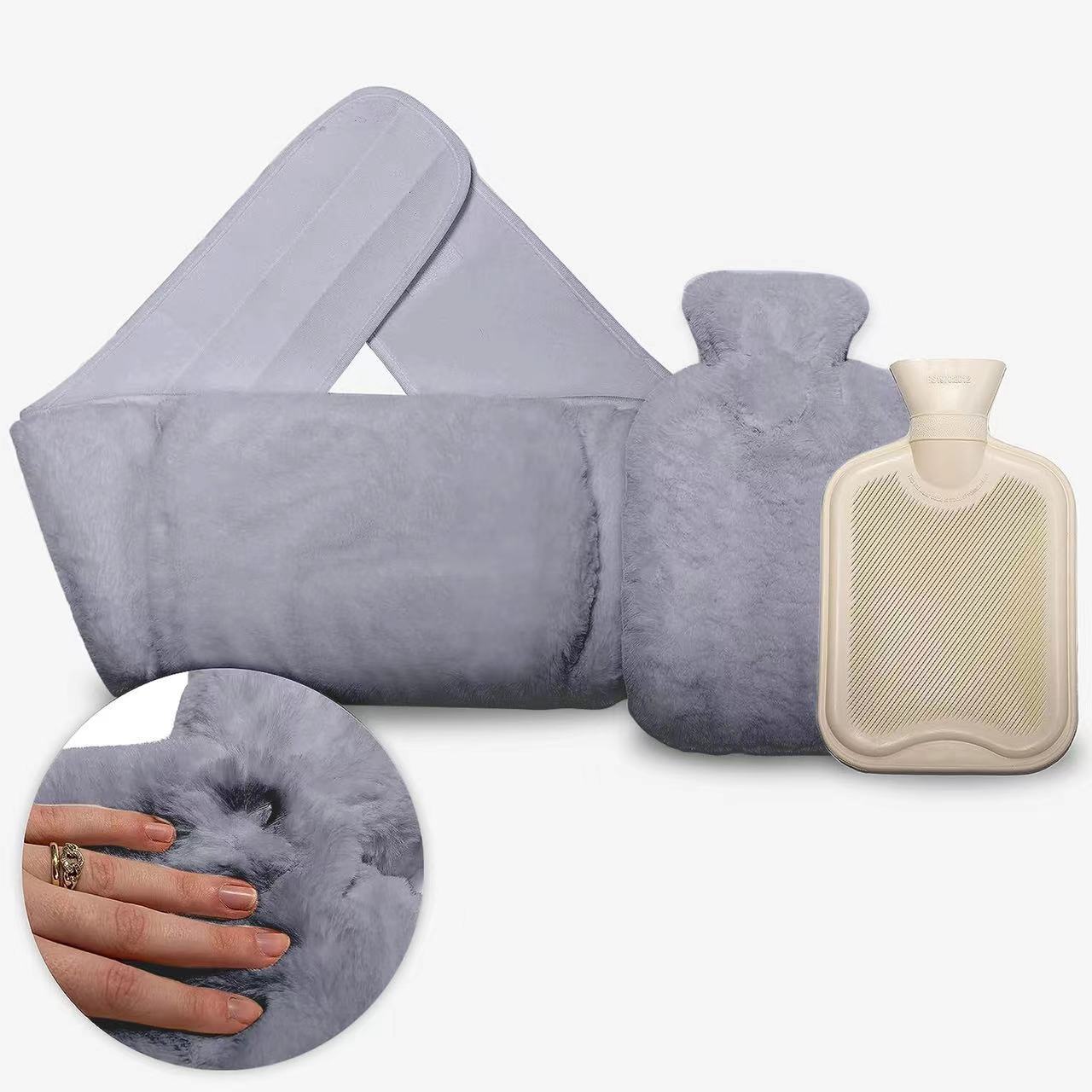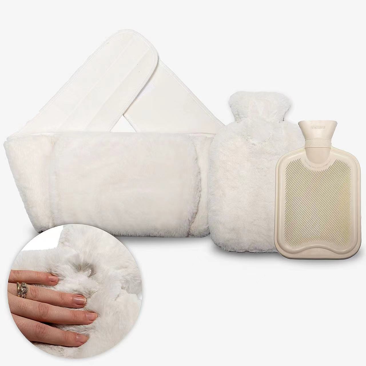Cross-border Amazon high-end hot water bag warm belt white imitation rabbit fur warm belt rubber 1.0L hot water bag
