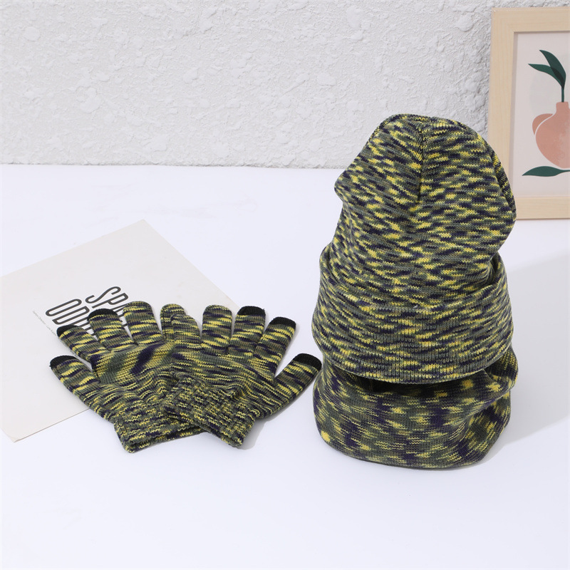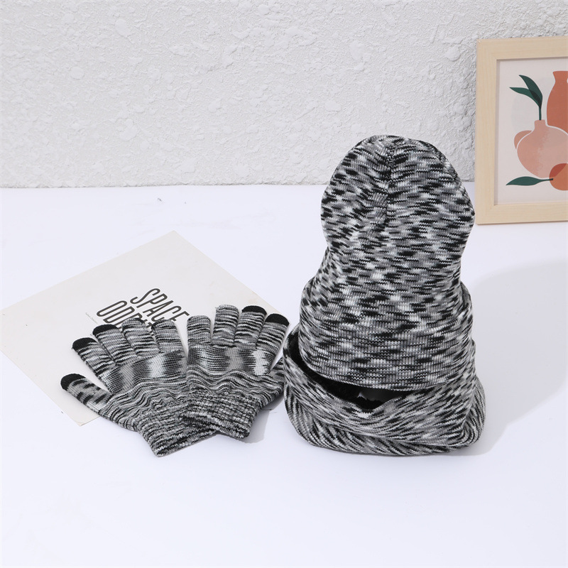 Cross-border Amazon hot European and American autumn and winter warm knitted hat new fashion hat scarf gloves three-piece set