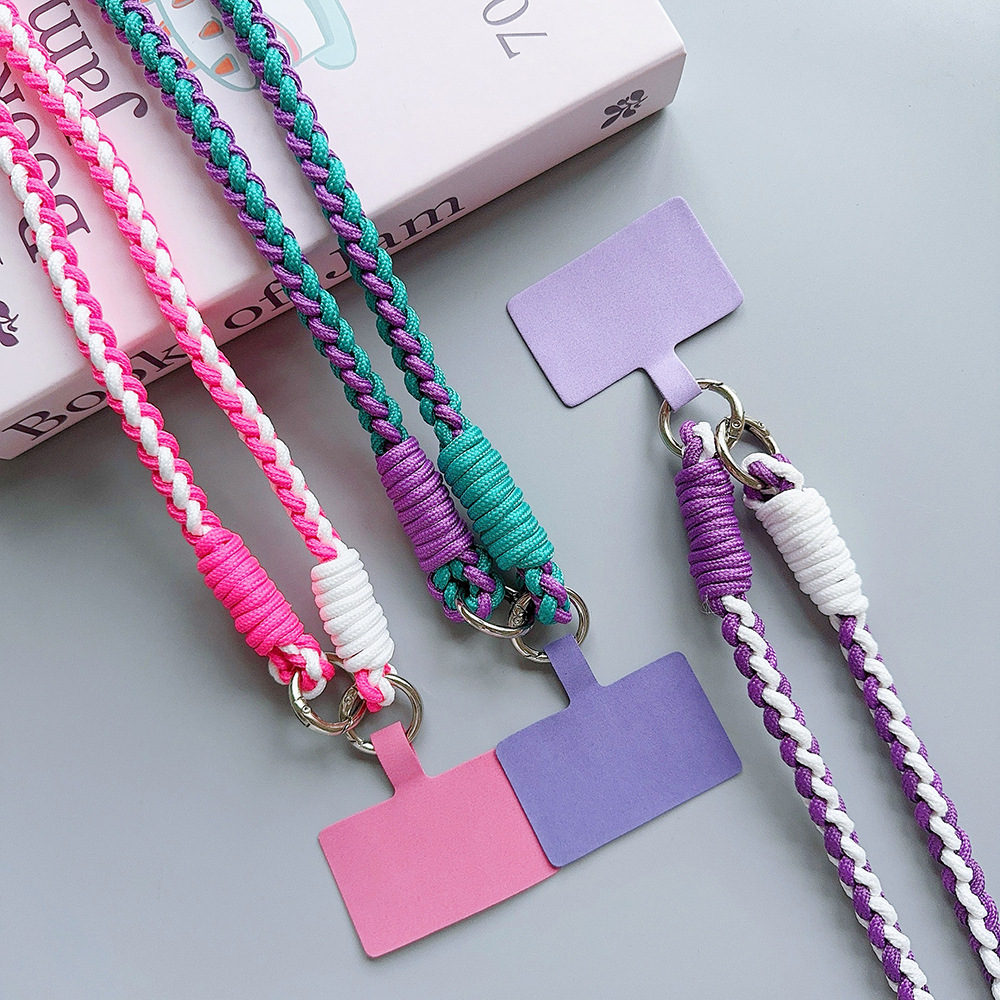 Cross-border Amazon Hot-selling Mobile Phone Case Card Lanyard Anti-loss Crossover Mobile Phone Back Clip Lanyard Line Four Strands Twist Rope