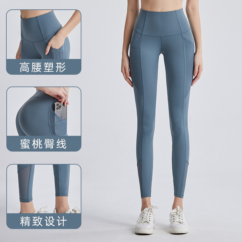 | nameOriginal | Cross-border Amazon New Double Pocket Yoga Pants Women's Naked High Waist Breathable Hollow Mesh Sports Fitness Pants |