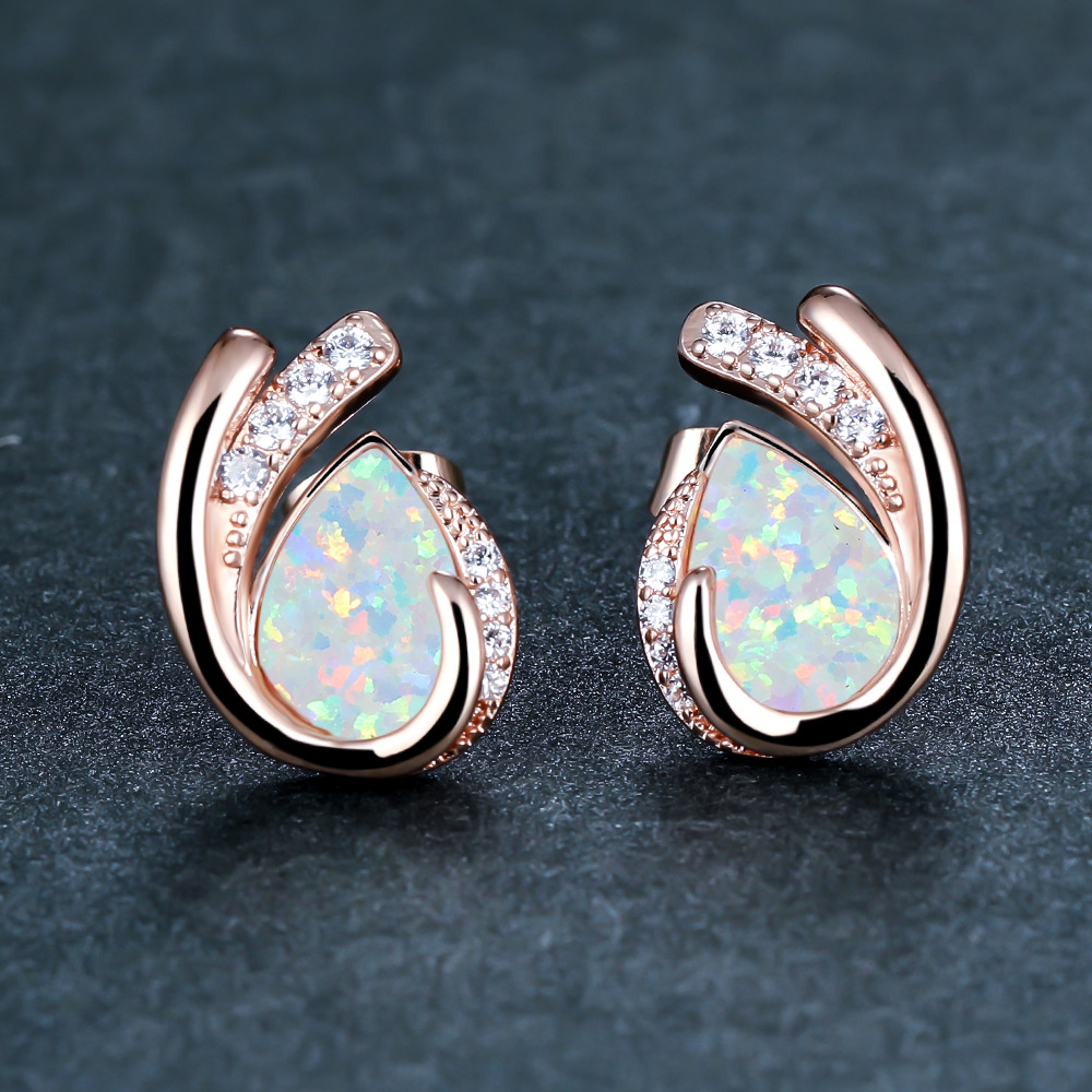 | nameOriginal | Cross-border Amazon New Gold Rose Gold Platinum Water Drops Blue and White Opal Geometric Diamond Stud Earrings for Women |