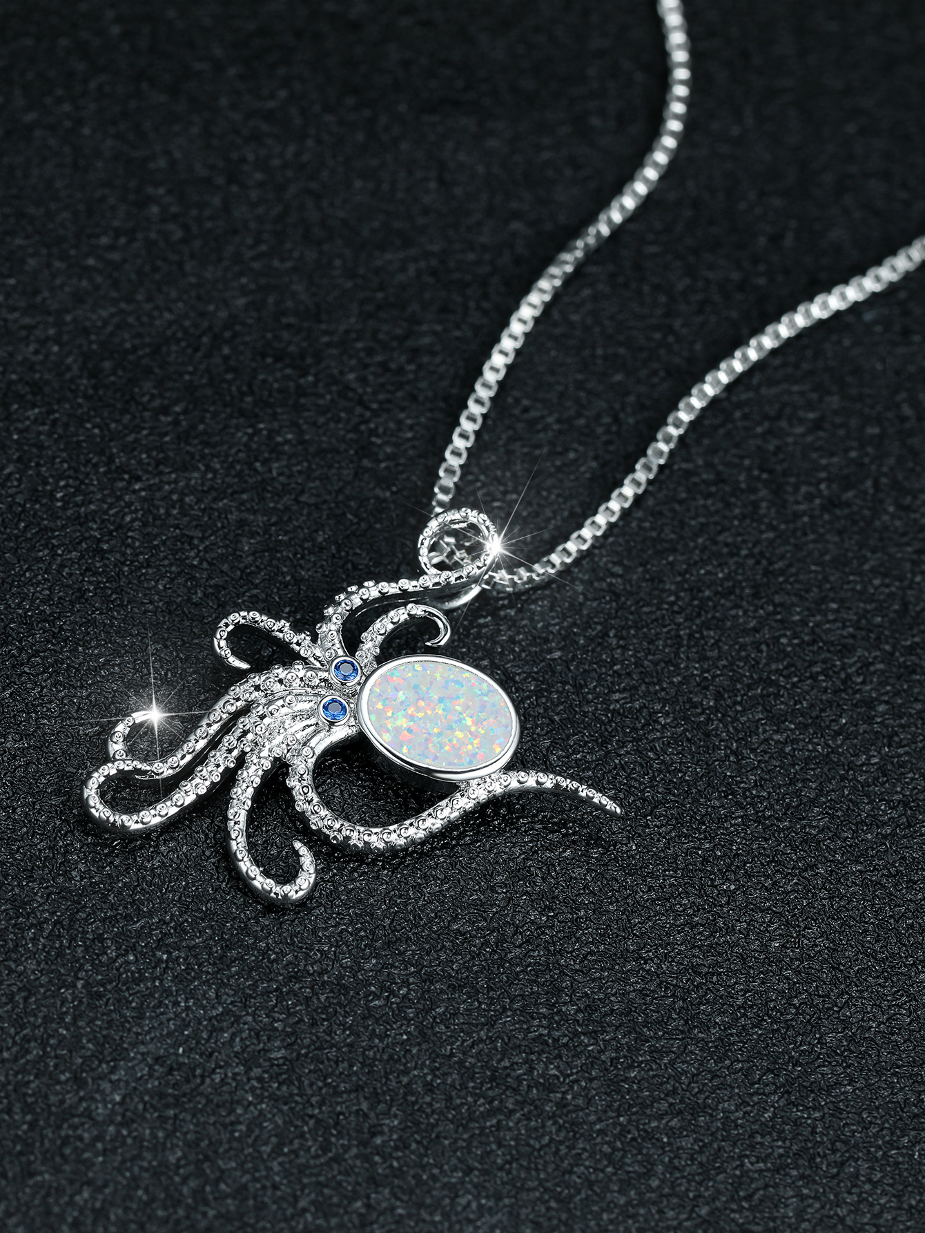 | nameOriginal | Cross-border Amazon Ocean Series Platinum Blue and White Opal Octopus Octopus Women's Personalized All-match Necklace |