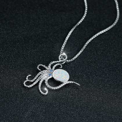 | nameOriginal | Cross-border Amazon Ocean Series Platinum Blue and White Opal Octopus Octopus Women's Personalized All-match Necklace |