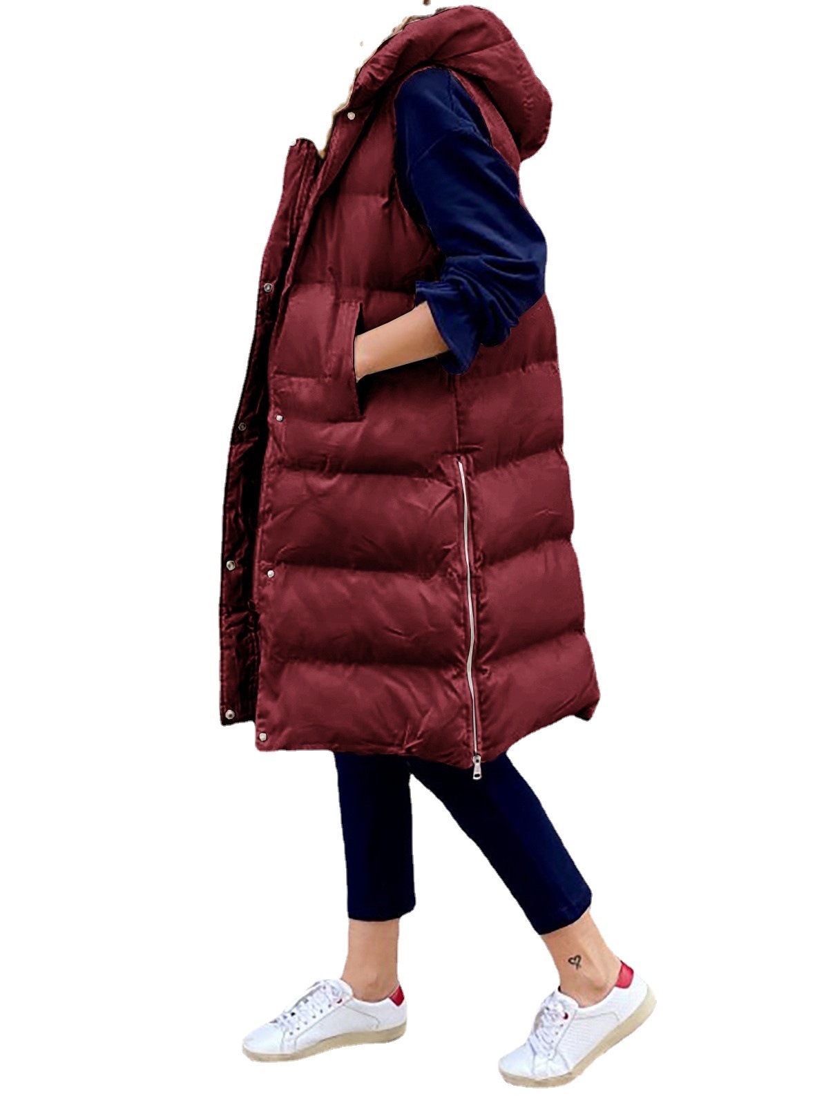 Cross-border Amazon solid color hooded long cotton-padded jacket waistcoat casual fashion single-breasted sleeveless coat women MJ6587