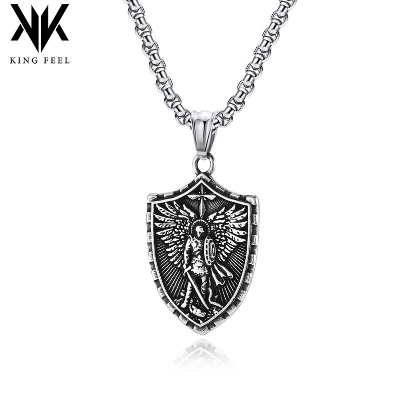 Cross-border Amazon St Michael Archangel titanium steel necklace men’s European and American retro shield pendant jewelry delivery
