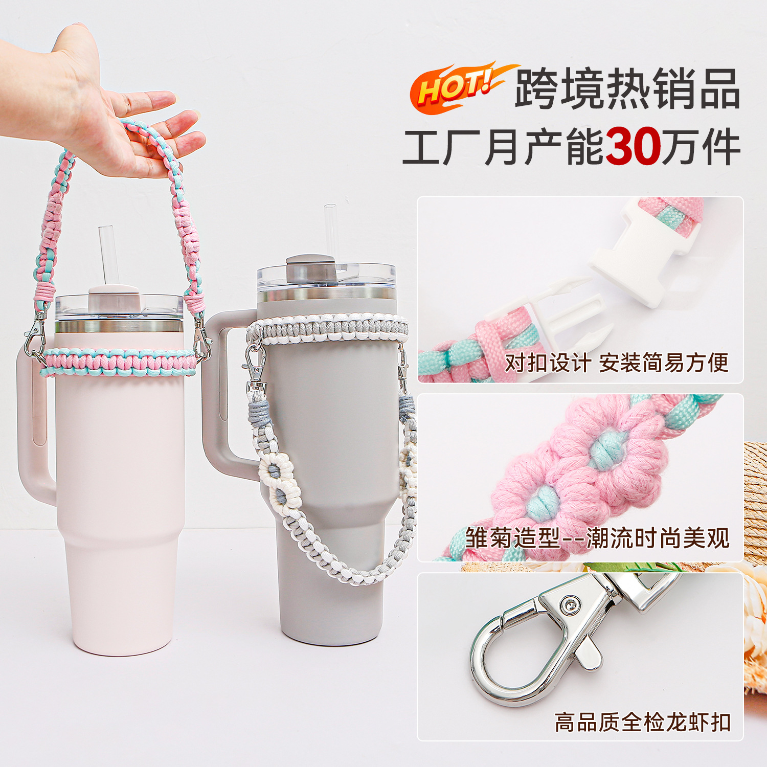 | nameOriginal | Cross-border Amazon stanley Sports Water Cup with Handmade Woven Hanging Ornaments Bohemian Daisy Water Cup Pendant |