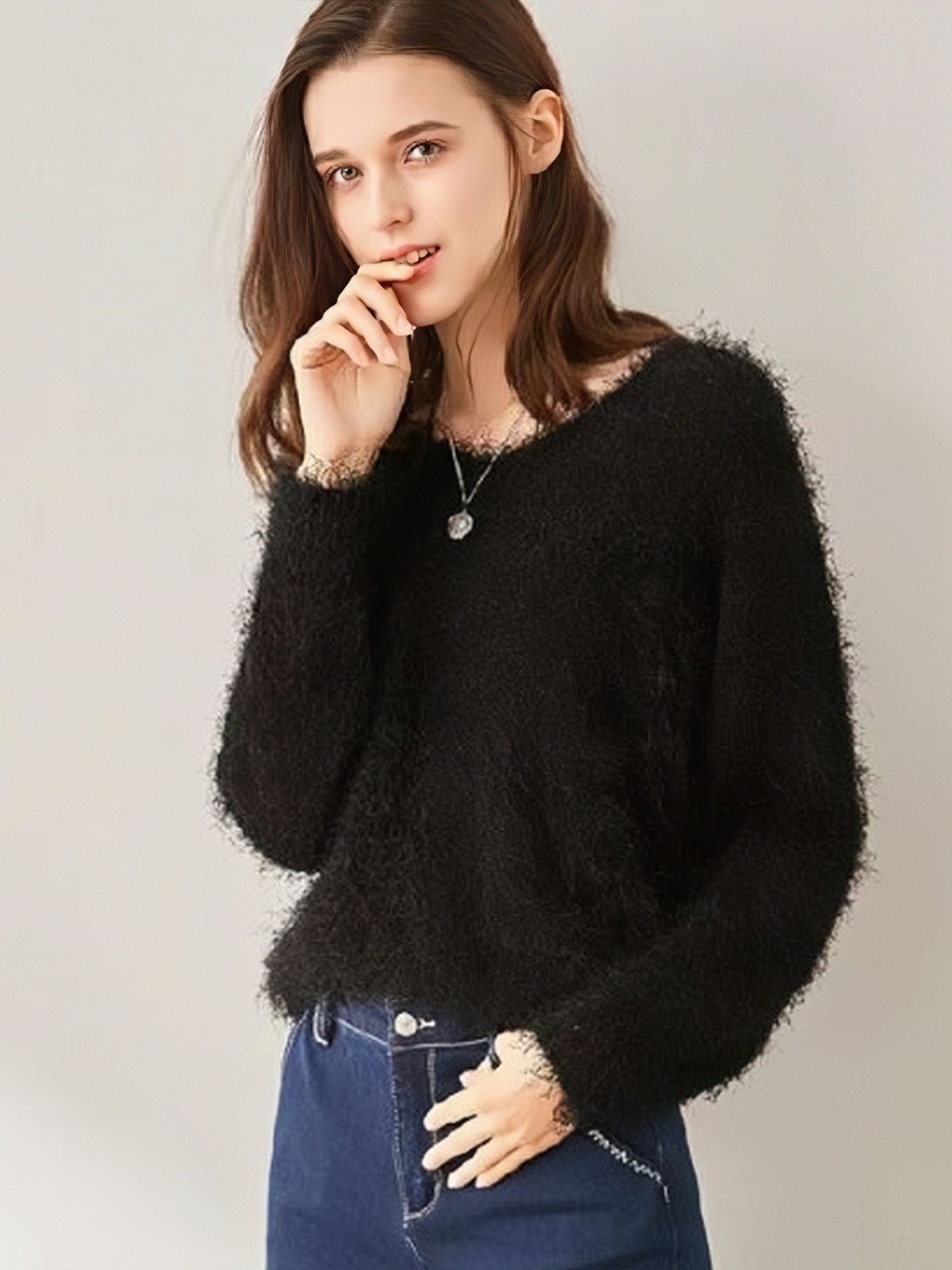 | nameOriginal | Cross-border Amazon sweater new loose autumn and winter European and American V-neck pullover solid color women's sweater imitation mink velvet thick |