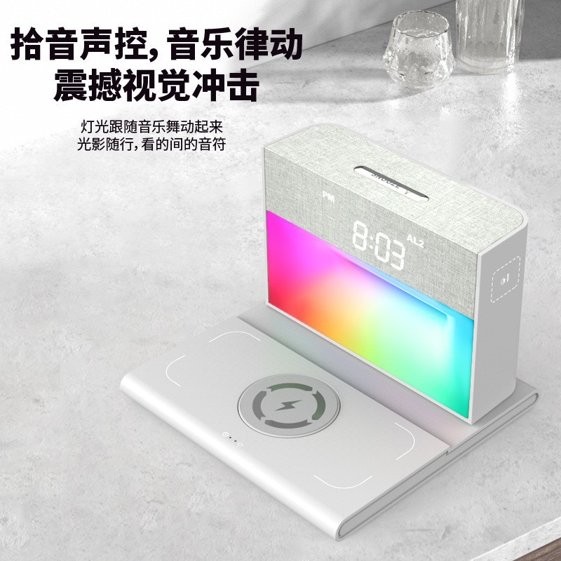 | nameOriginal | Cross-border Amazon wireless charging mobile phone holder desktop smart night light clock alarm clock Bluetooth speaker gift |