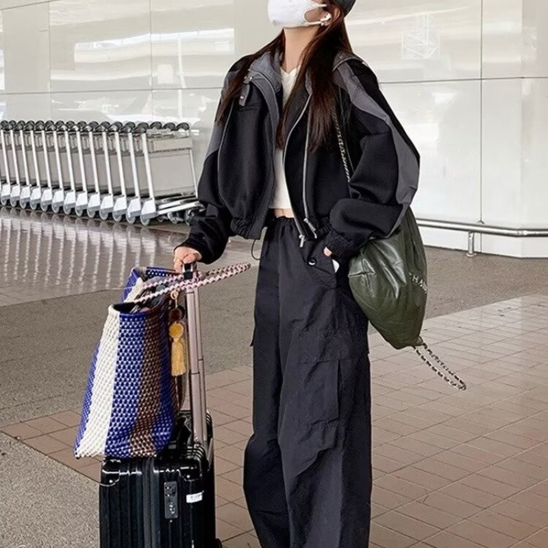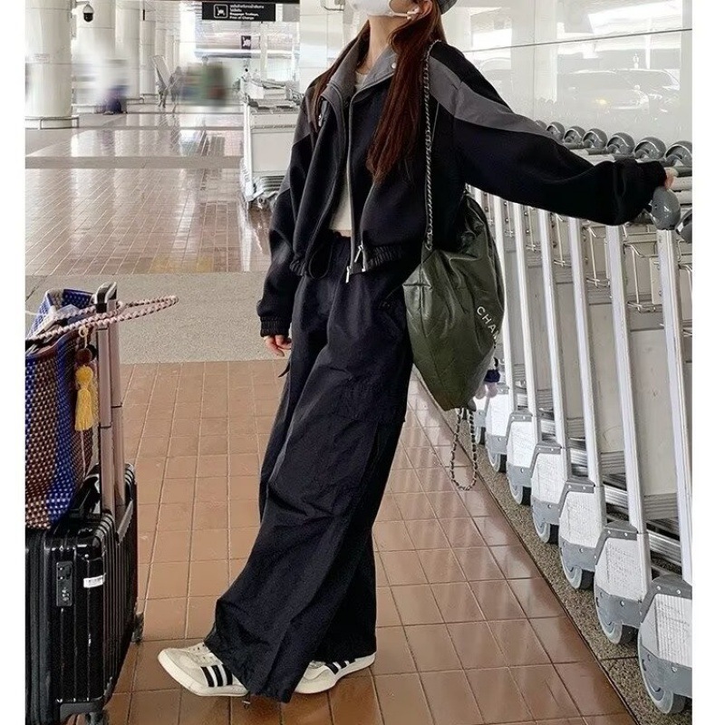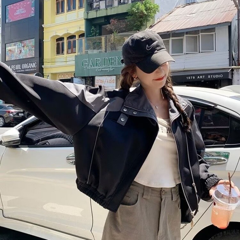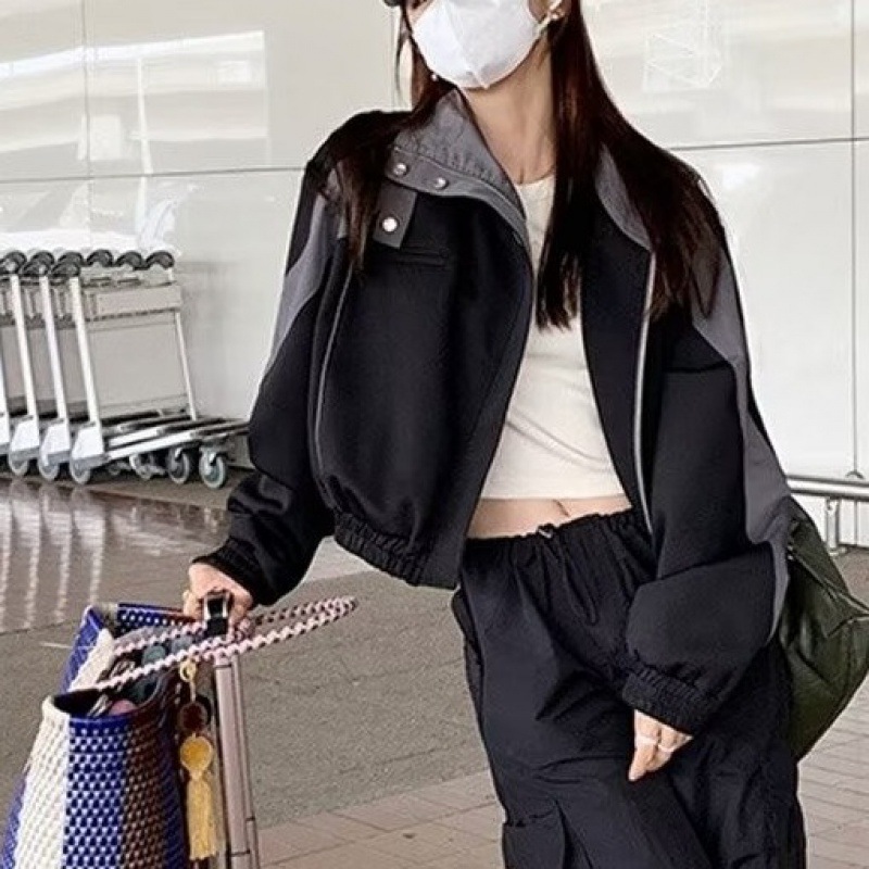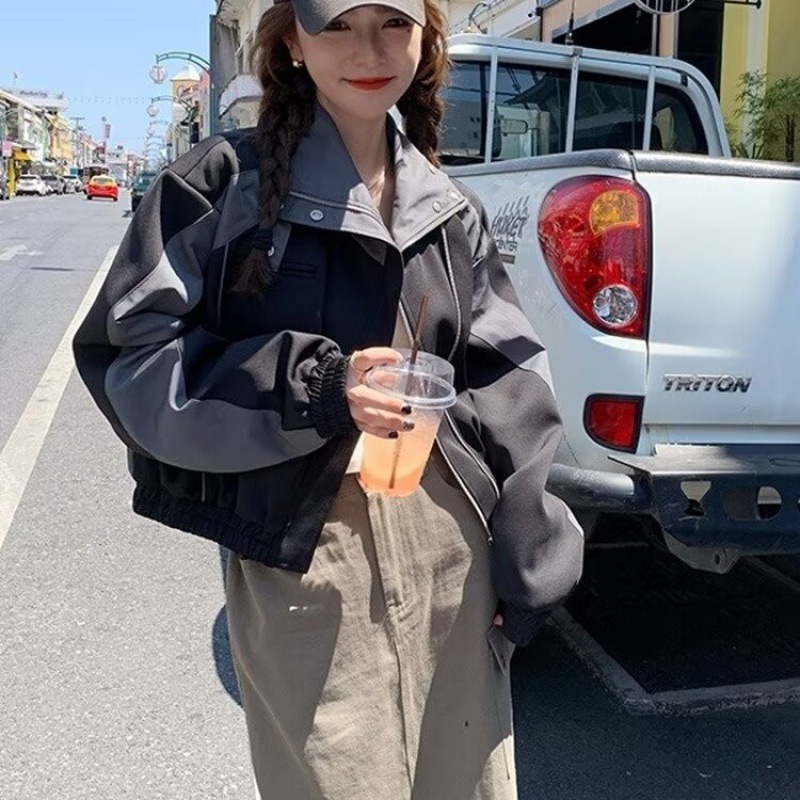 | nameOriginal | Cross-border American Retro Black Stitching Coat Women's Spring and Autumn New Style Short Baseball Suit Jacket for Small Men |