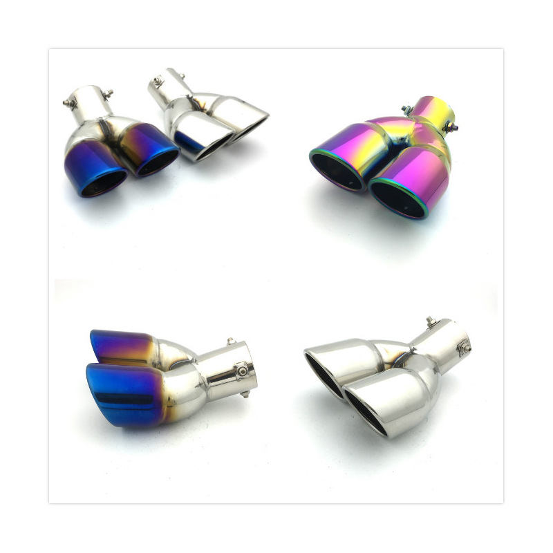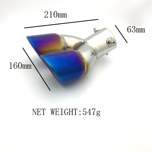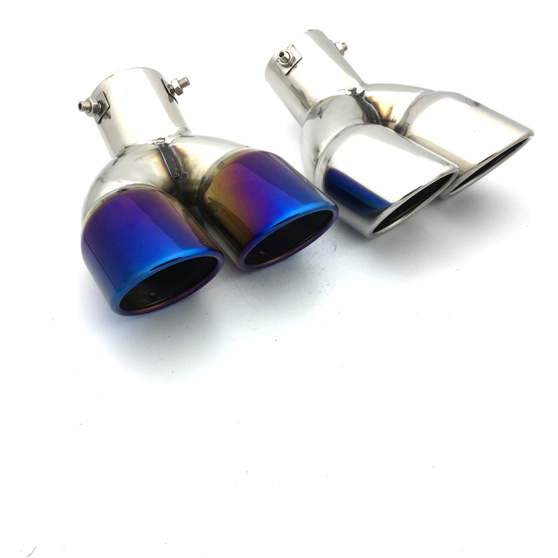 Cross-border Automobile General modified a two-baked blue tail throat stainless steel double pipe exhaust pipe black titanium straight bending muffler