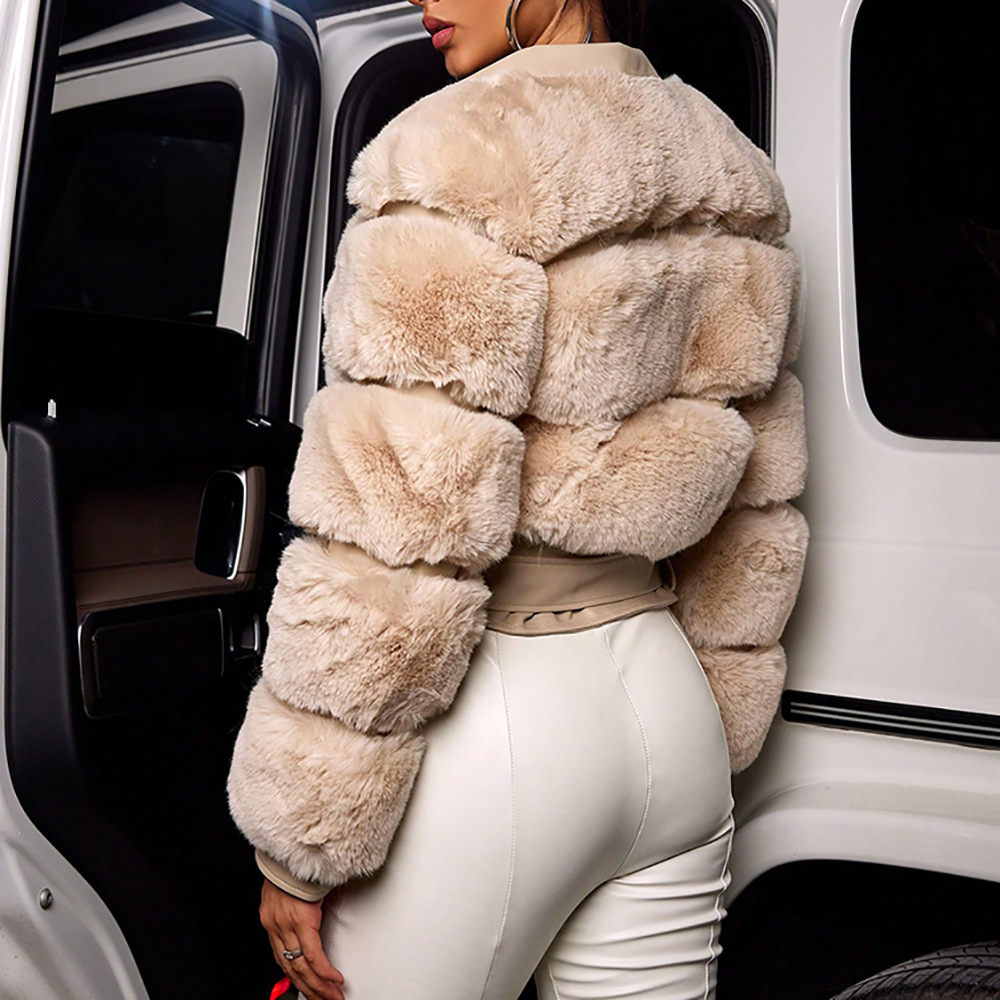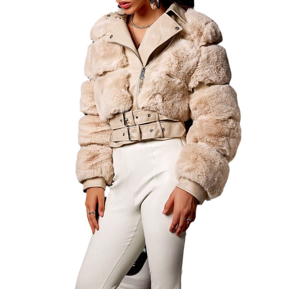 | nameOriginal | Cross-border autumn and winter Europe and the United States new women's imitation fur top stitching slim plaid PU leather short fashion coat |
