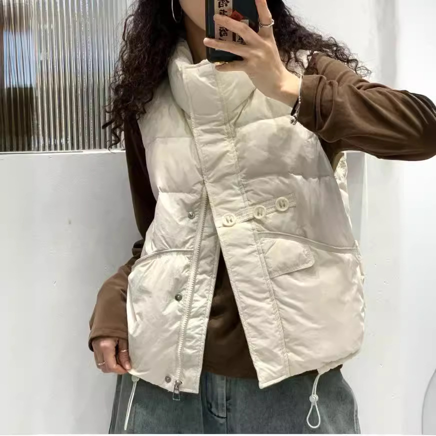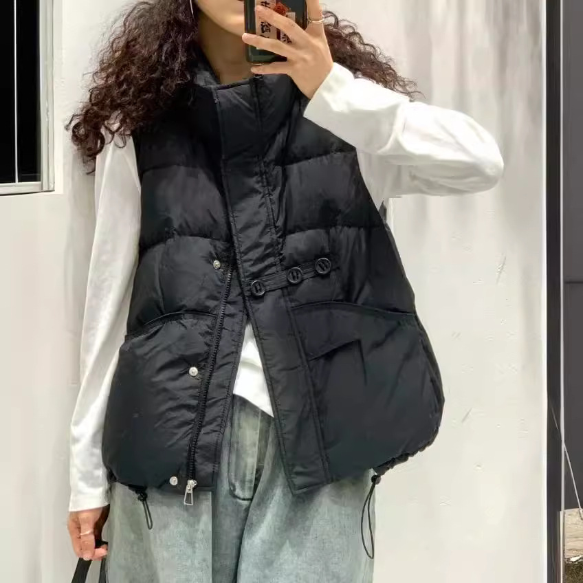 | nameOriginal | Cross-border autumn and winter new button hem drawstring European goods stand collar three-button warm down jacket women's short fashion vest |
