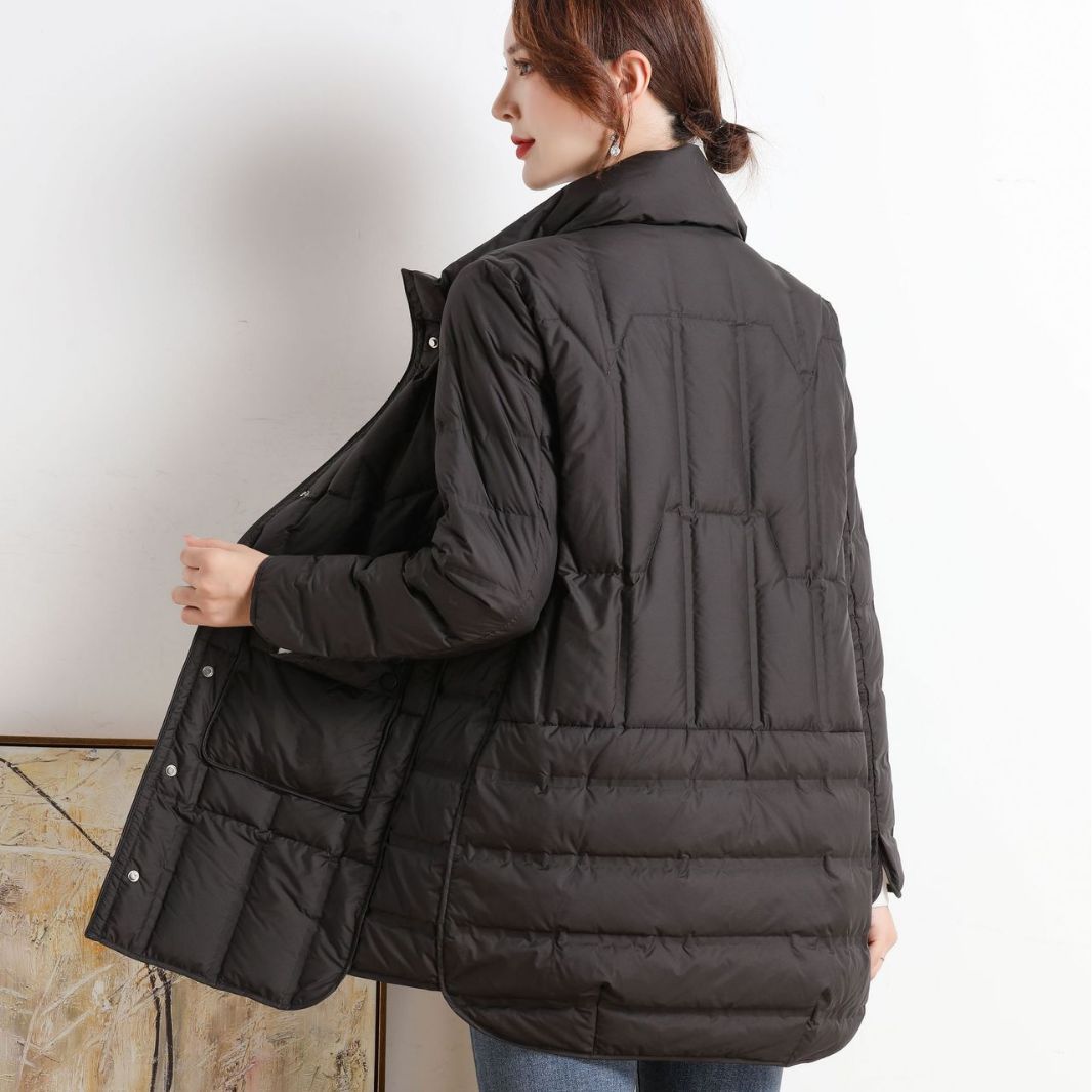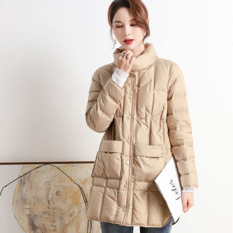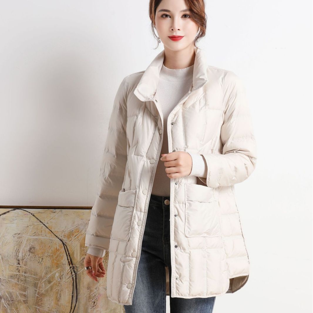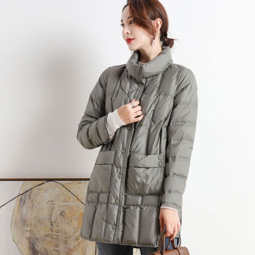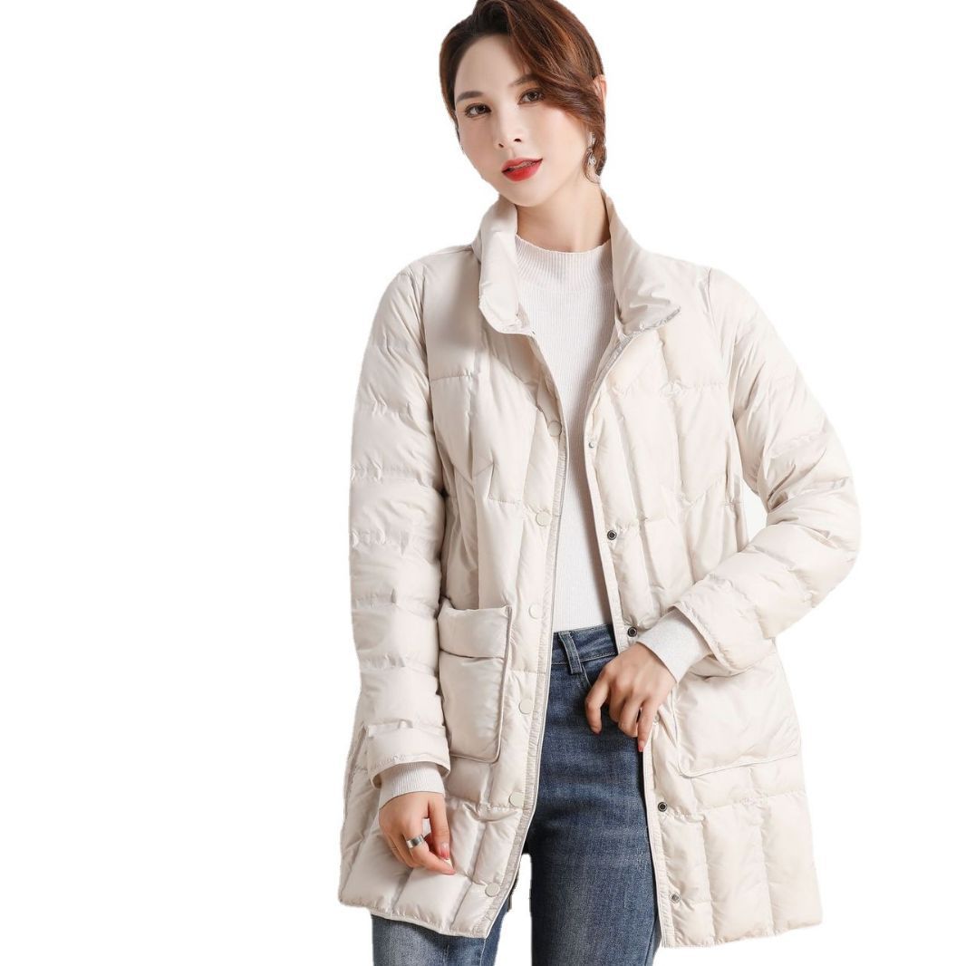 | nameOriginal | Cross-border Autumn and Winter New Seamless Adhesive Anti-drill Down Jacket Women's Lightweight Mid-length Stand Collar Warm Jacket Trendy |