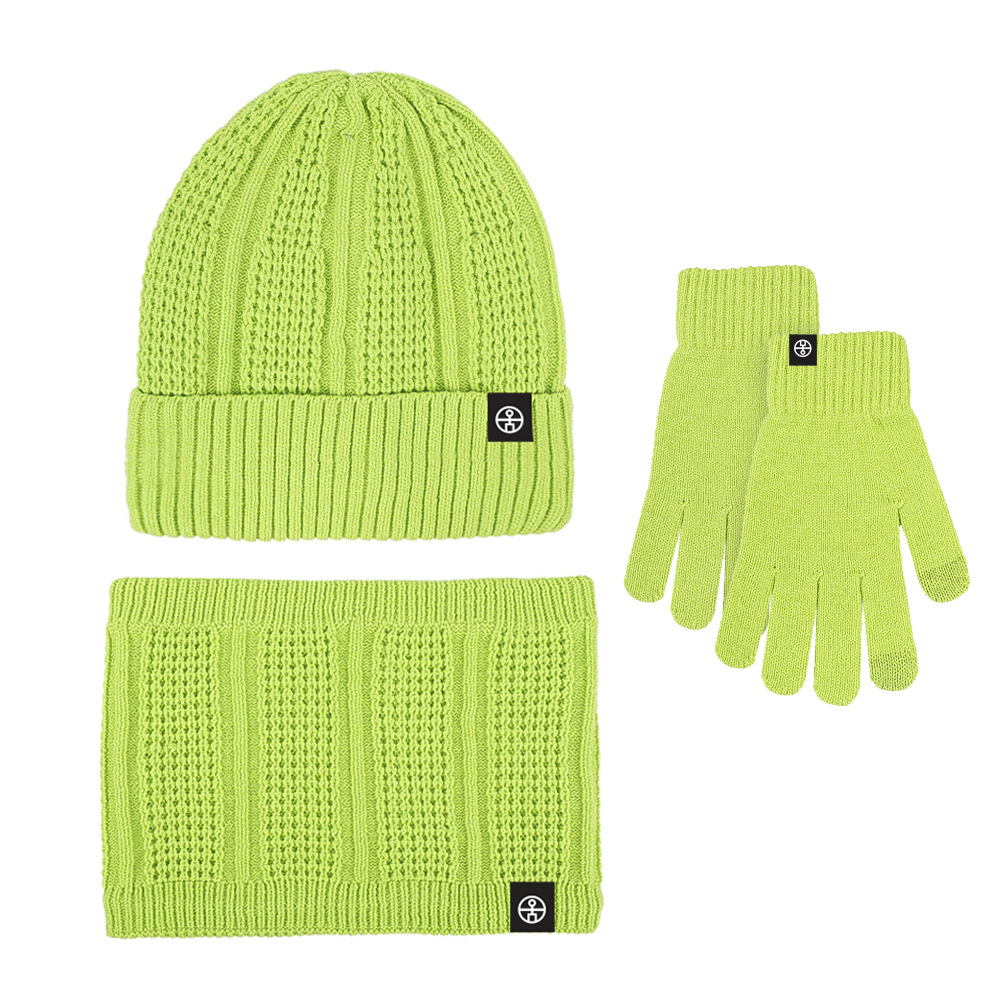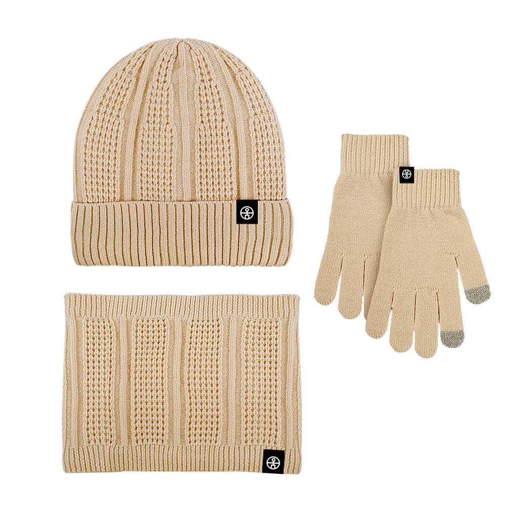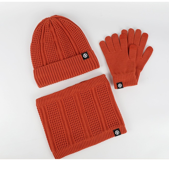 | nameOriginal | Cross-border autumn and winter wool knitted elastic velvet hat scarf gloves three-piece set outdoor fleece-lined warm pullover scarf |